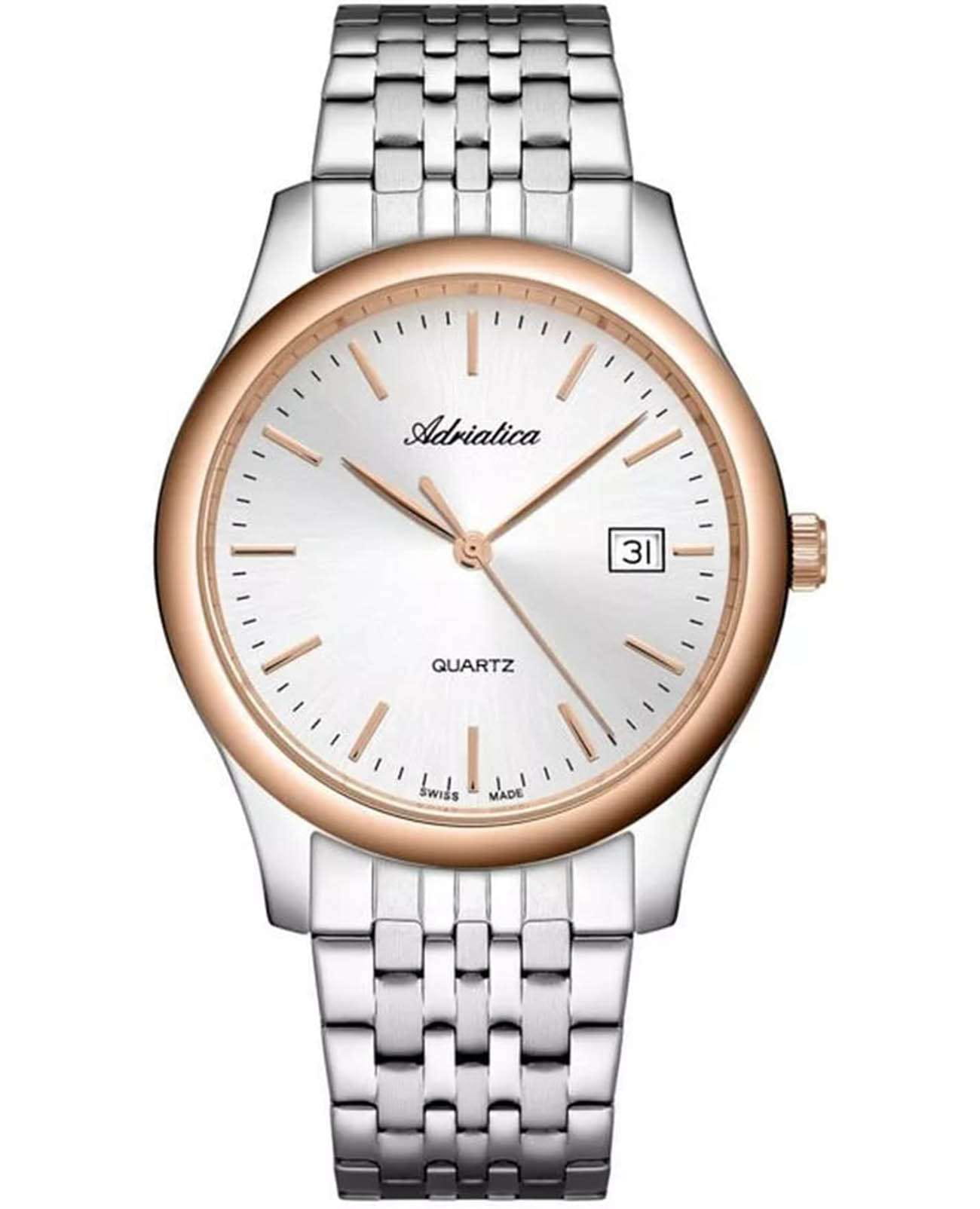 Часы Adriatica A1024.R113Q представляют собой идеальное сочетание элегантности и функциональности, разработанное для современных мужчин. Их стильный циферблат защищен сапфировым стекломСапфировое стеклоПрочный и надёжный материал из кристалла сапфира синтетического происхождения, характеризующийся особой твёрдостью и устойчивостью к царапинам и повреждениям., что придает дополнительную устойчивость к царапинам. Корпус из нержавеющей стали подчеркивает их изысканность и долговечность. Надежный кварцевый механизм с калибром RONDA 515 гарантирует точность времени, а водозащита WR 50 (5 ATM) обеспечивает защиту от воды в различных условиях. Браслет из нержавеющей стали с раскладной застёжкойРаскладная застёжкаТакой тип застёжки используется только на браслетах из металла. Она никогда не раскрывается полностью, происходит разделение на 2 и более частей. Раскладывающая застёжка снизит вероятность потери часов к минимуму., гармонично дополняет общий дизайн и обеспечивает комфортное ношение на запястье. Часы оснащены функцией отображения даты в окошке в положении 3 часа, что добавляет практичности в повседневной жизни. БезельБезельВнешний ободок, закрепляющий стекло. В спортивных часах так называется поворотное кольцо с делениями на циферблате, выполняет роль таймера – замеряет отрезки времени на шкале. Неподвижный безель – элемент декора. Однонаправленно вращающийся безель на дайверских часах позволяет фиксировать моменты погружения и выныривания на поверхность. с PVD-покрытиемPVDУльтратонкое покрытие наносится в технике вакуумного напыления, сочетает в себе нитрид титана особой прочности со слоем золота или оксида хрома. Несёт в себе декоративную или защитную функцию..