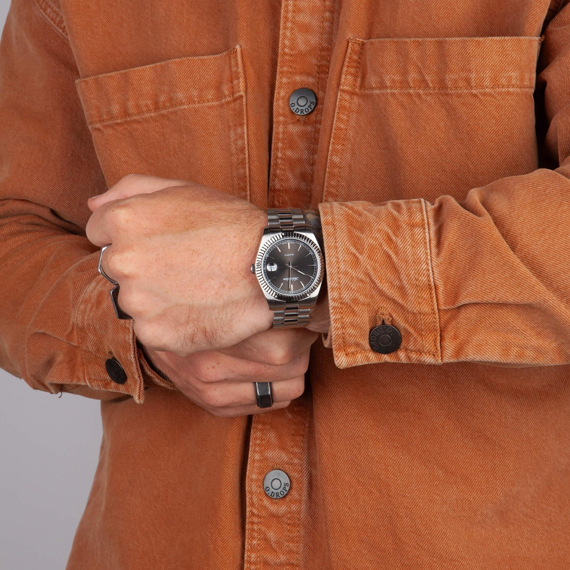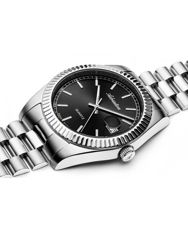 Часы Adriatica A1090.5116Q воплощают в себе классический стиль и надежность, идеально подходящие для современных мужчин. Их черный циферблат, защищенный минеральным стекломМинеральное стеклоМинеральное стекло представляет собой искусственно выращенный минерал кварца. Такое стекло отличается особой устойчивостью к повреждениям и царапинам. Уступает по некоторым качествам сапфировому стеклу., заключен в корпус из прочной нержавеющей стали. Надежный кварцевый механизм с калибром RONDA 515 обеспечивает точность, а водозащита уровня WR 50 (5 ATM) делает их устойчивыми к воздействию воды. Стальной браслет с раскладной застёжкойРаскладная застёжкаТакой тип застёжки используется только на браслетах из металла. Она никогда не раскрывается полностью, происходит разделение на 2 и более частей. Раскладывающая застёжка снизит вероятность потери часов к минимуму. подчеркивает элегантный стиль и комфортно сидит на запястье. Часы оснащены функцией отображения даты в окошке в положении 3 часа, что добавляет практичности в повседневной жизни. Люминесцентное покрытиеЛюминесцентное покрытиеПозволяет считывать показания времени в темноте. Производители наносят на стрелки, часовые индексы, безель или поверхность циферблата светонакопительный состав, дающий холодное свечение. на стрелках и метках обеспечивает отличную видимость в темноте.