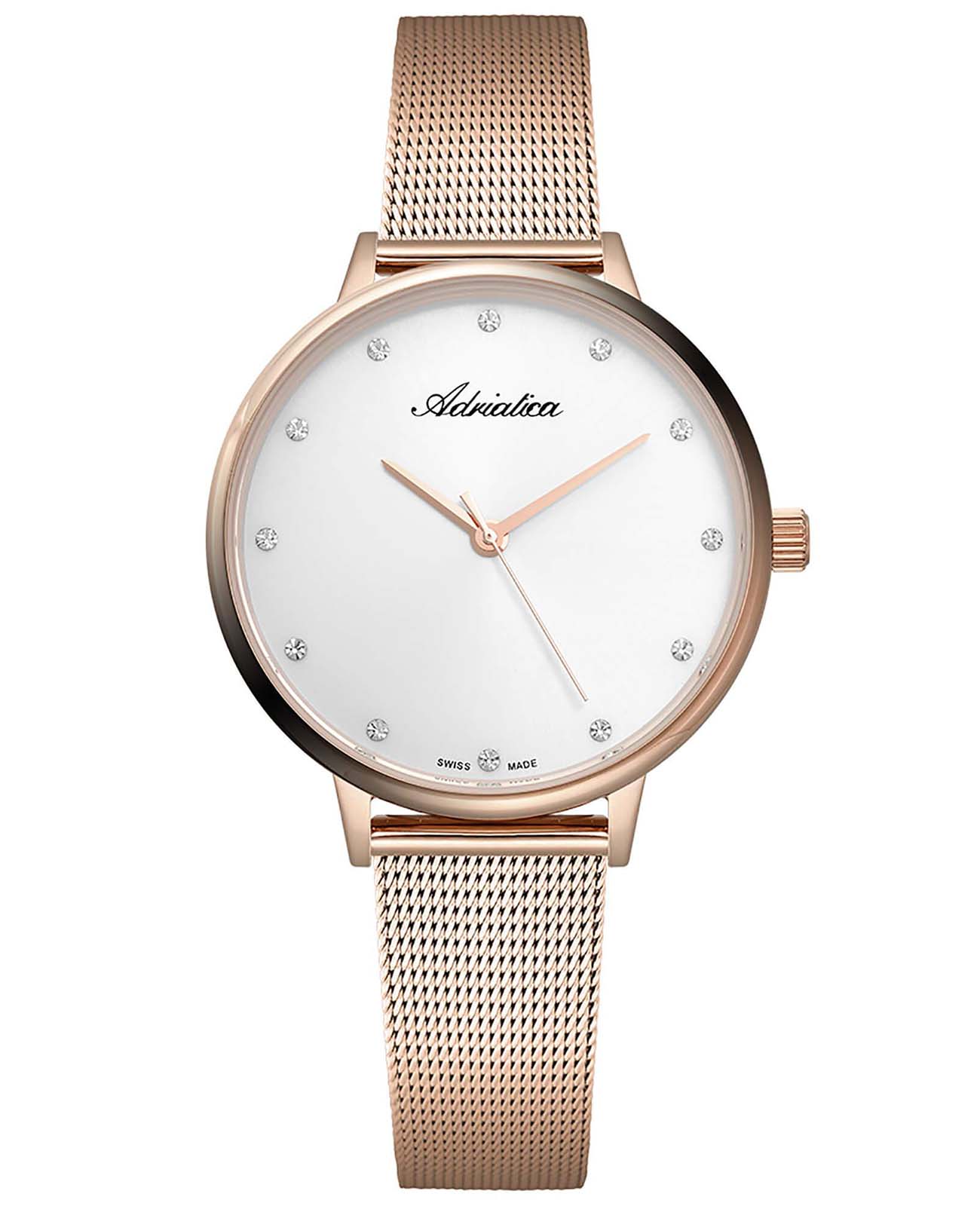 Женские часы с минеральным стеклом Adriatica A3573.9143Q, кварцевый механизм с высокой точностью. Класс водозащиты: 30 метров, позволит защитить корпус от случайных брызг или капель дождя. Корпус часов изготовлен из стали, розового цвета.