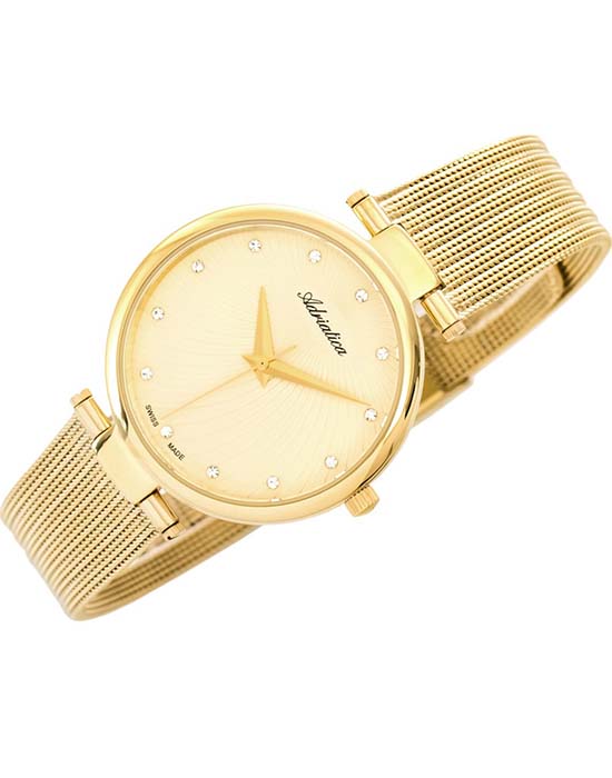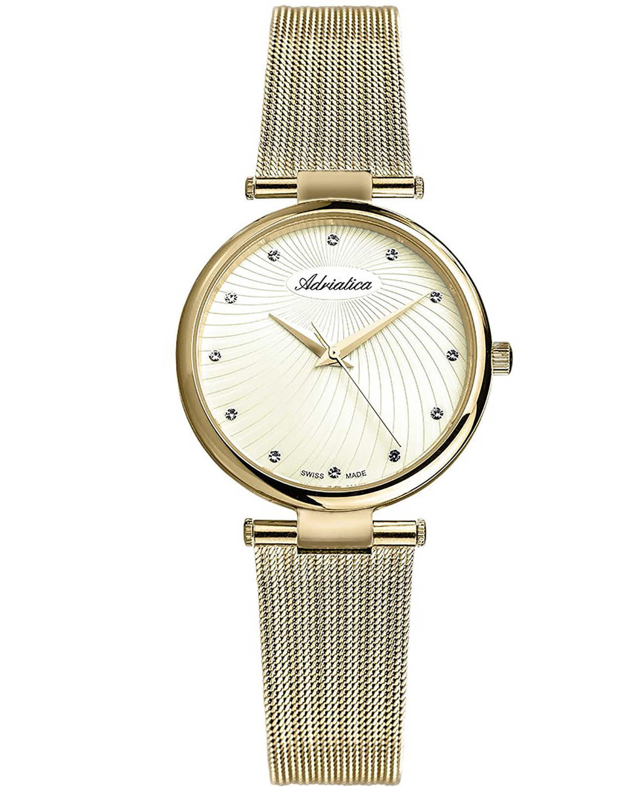 Женские часы с минеральным стеклом Adriatica A3689.1141Q, кварцевый механизм с высокой точностью. Класс водозащиты: 30 метров, позволит защитить корпус от случайных брызг или капель дождя. Корпус часов изготовлен из стали, золотистого цвета.