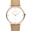Amalys AMW-186 — женская модель с утончённым классическим дизайном, в которой сочетаются элегантность и практичность. Круглый корпус диаметром 33 мм выполнен из нержавеющей стали с PVD-покрытиемPVDУльтратонкое покрытие наносится в технике вакуумного напыления, сочетает в себе нитрид титана особой прочности со слоем золота или оксида хрома. Несёт в себе декоративную или защитную функцию., гармонирующим с ремешком шириной 16 мм в том же исполнении. Защитную функцию выполняет сапфировое стеклоСапфировое стеклоПрочный и надёжный материал из кристалла сапфира синтетического происхождения, характеризующийся особой твёрдостью и устойчивостью к царапинам и повреждениям., стойкое к царапинам и сохраняющее прозрачность. Механизм — кварцевый, обеспечивающий точность и стабильность хода. Кожаный ремешок на стандартной застежке, который сочетает надёжность фиксации и удобство повседневного использования. Водозащита 3 ATM защищает часы от случайных брызг и дождя. Циферблат с римскими индексами и изящными стрелками подчёркивает классическую эстетику модели, делая её уместной как в повседневных образах, так и в торжественной обстановке.