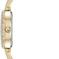 Женские кварцевые часы Anne Klein Box Set 5074GPST представляют собой элегантный аксессуар с овальным корпусом 20×30 мм из латуни с PVDPVDУльтратонкое покрытие наносится в технике вакуумного напыления, сочетает в себе нитрид титана особой прочности со слоем золота или оксида хрома. Несёт в себе декоративную или защитную функцию.-покрытием в золотистом оттенке и обрамленный бриллиантами. Модель оснащена кварцевым механизмом японского производства с точностью хода ±20 секунд в месяц и аналоговой индикацией времени. Циферблат бежевого цвета с позолоченными стрелками защищен минеральным стекломМинеральное стеклоМинеральное стекло представляет собой искусственно выращенный минерал кварца. Такое стекло отличается особой устойчивостью к повреждениям и царапинам. Уступает по некоторым качествам сапфировому стеклу., устойчивым к царапинам. Водонепроницаемость 30 метров (3 атм) обеспечивает защиту от брызг и дождя. Металлический браслет из нержавеющей стали шириной 20 мм и так же обрамленный бриллиантами, гармонично сочетается с корпусом, создавая целостный образ. Часы толщиной 6 мм отличаются утонченным профилем и комфортной посадкой на запястье. Прилагается два дополнительных браслета.