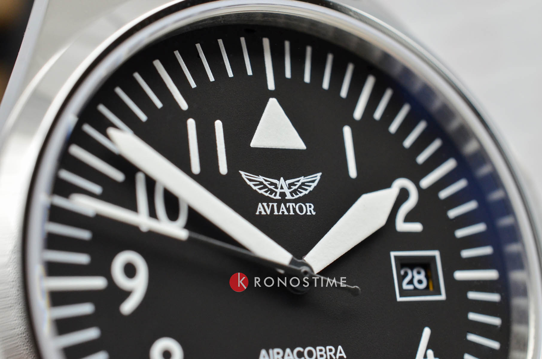 Aviator V.1.38.0.315.4 “Airacobra 43 Type A” — надёжные швейцарские пилотские часы с насыщенным функционалом и строгим авиационным дизайном. Корпус диаметром 42,8 мм выполнен из нержавеющей стали.