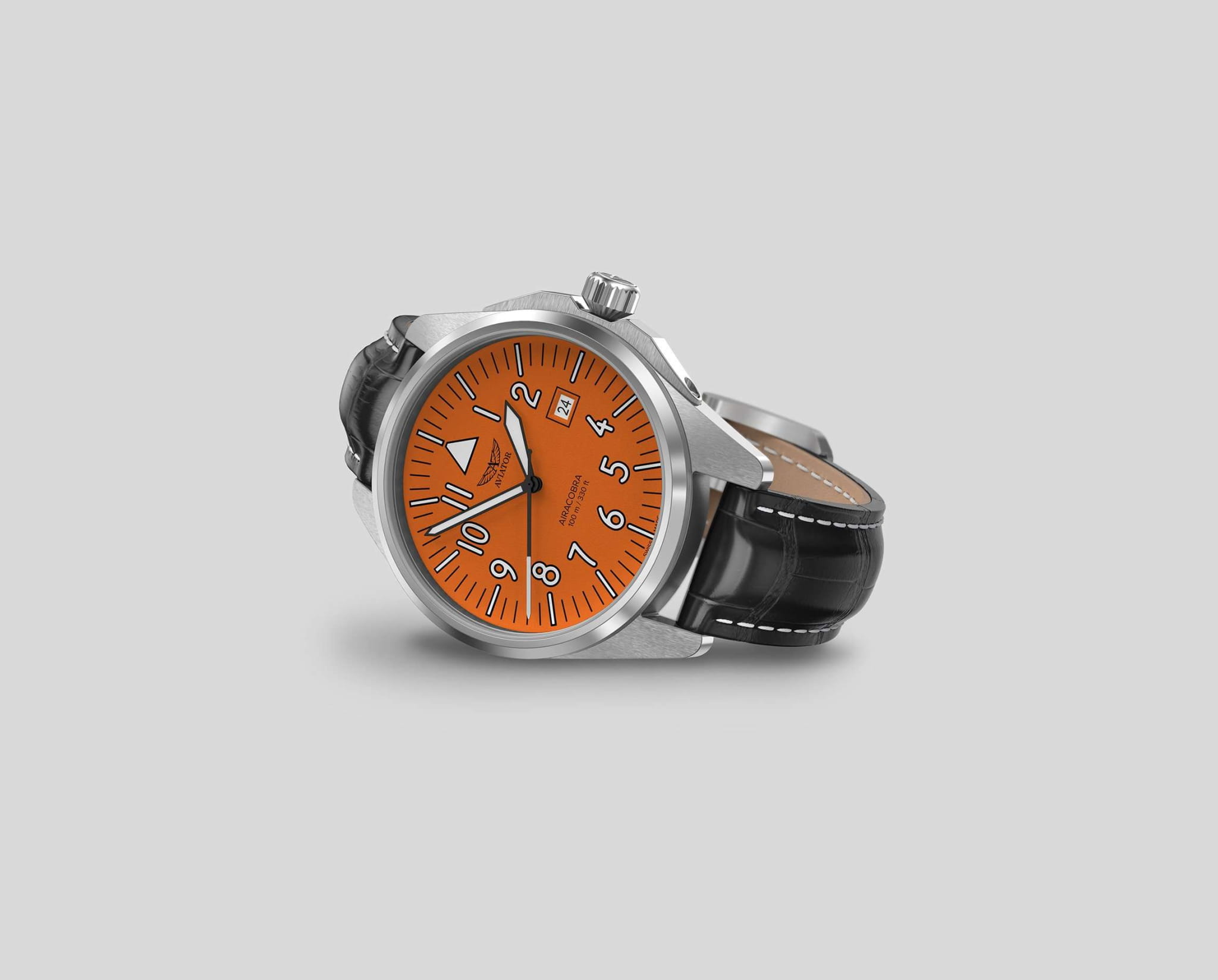 Aviator V.1.38.0.321.4 “Airacobra 43 Type A” — надёжные швейцарские пилотские часы с насыщенным функционалом и строгим авиационным дизайном. Корпус диаметром 42,8 мм выполнен из нержавеющей стали.