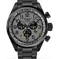 Aviator Airacobra P45 Chrono V.2.25.5.174.5 — швейцарские часы в духе пилотских инструментов, объединяющий точность, удобство и лаконичный дизайн. Диаметр корпуса — 45 мм, выполнен из нержавеющей стали 316L с PVD-покрытиемPVDУльтратонкое покрытие наносится в технике вакуумного напыления, сочетает в себе нитрид титана особой прочности со слоем золота или оксида хрома. Несёт в себе декоративную или защитную функцию., что подчёркивает техническую надёжность в образе часов. Циферблат оформлен в классическом aviator-стиле: крупные арабские цифры, широкие стрелки и чёткое деление минут позволяют считывать время мгновенно. Стрелки и метки покрыты люминесцентным покрытиемЛюминесцентное покрытиеПозволяет считывать показания времени в темноте. Производители наносят на стрелки, часовые индексы, безель или поверхность циферблата светонакопительный состав, дающий холодное свечение. Superluminova для отличной читаемости при слабом освещении. Циферблат защищён стойким сапфировым стекломСапфировое стеклоПрочный и надёжный материал из кристалла сапфира синтетического происхождения, характеризующийся особой твёрдостью и устойчивостью к царапинам и повреждениям. с антибликовым покрытиемАнтибликовое покрытиеСлой оксида металла в 0,13-0,3 микрон, благодаря которому стекло часов не бликует и не отражает свет. Антибликовое покрытие уменьшает отражение света в 10 раз, обеспечивая отличную читаемость показателей циферблата.. У модели присутствуют дата и точный откидной механизм завинчивающейся заводной головки и задней крышки, обеспечивающий надёжную водозащиту до 100 м и защиту от ударов. Внутри установлен швейцарский кварцевый механизм, который обеспечивает функции хронографаХронографФункция позволяет измерять отрезки времени с особой точностью: часы, минуты, секунды. Верным признаком хронографа является наличие на циферблате 3 дополнительных окошек-счётчиков.. Функции добавить (ADD) и разделить (SPLIT). Часы комплектуются браслетом из нержавеющей стали с PVD-покрытиемPVDУльтратонкое покрытие наносится в технике вакуумного напыления, сочетает в себе нитрид титана особой прочности со слоем золота или оксида хрома. Несёт в себе декоративную или защитную функцию. с удобной раскладной застёжкойРаскладная застёжкаТакой тип застёжки используется только на браслетах из металла. Она никогда не раскрывается полностью, происходит разделение на 2 и более частей. Раскладывающая застёжка снизит вероятность потери часов к минимуму., обеспечивающей надёжную фиксацию и комфорт при ежедневной носке. Эти изысканные часы так же обладают функциями тахиметраТахиметрРазмеченная шкала, располагается на ободке или безеле часов. Тахиметр позволяет рассчитать скорость на определённом участке пути, расстояние измеряется в километрах или милях., секундомераСекундомерСекундоме́р — прибор, способный измерять интервалы времени с точностью до долей секунды. и телеметра. Airacobra — это практичный и стильный инструмент для путешествий и активной повседневности, объединяющий авиационную эстетику, точный механизм и удобство.