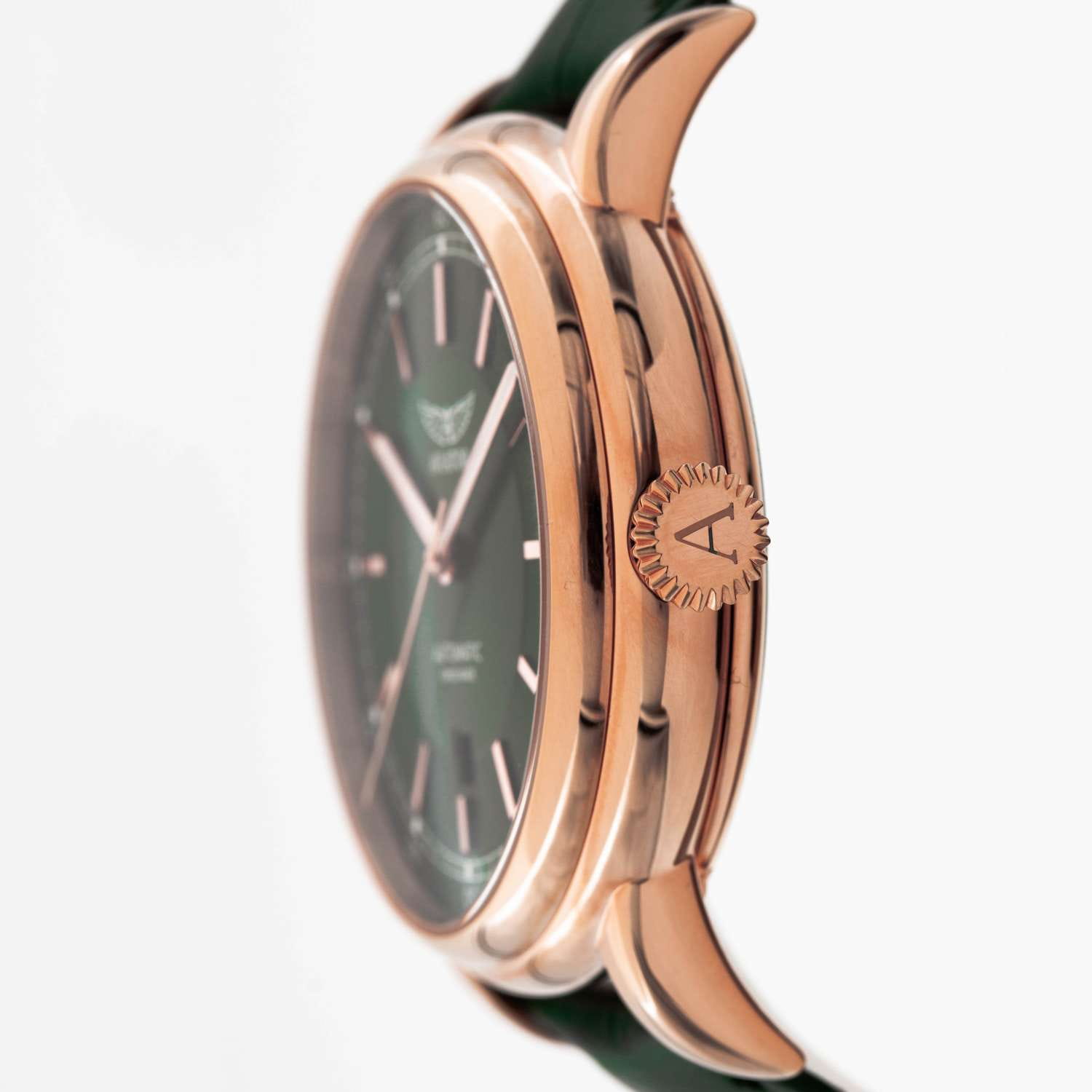 Aviator Douglas DC-3 V.3.32.2.237.4 — швейцарские часы в классике авиадизайна, сочетающие безупречную читаемость и высокую надёжность. Лимитированная серия. Корпус диаметром 45 мм выполнен из нержавеющей стали 316L с PVD-покрытиемPVDУльтратонкое покрытие наносится в технике вакуумного напыления, сочетает в себе нитрид титана особой прочности со слоем золота или оксида хрома. Несёт в себе декоративную или защитную функцию. цвета розового золота. Накладные метки выполнены в виде штрихов. Окошко даты находится в положении 6 часов. Часовые метки и стрелки покрыты люминесцентным покрытиемЛюминесцентное покрытиеПозволяет считывать показания времени в темноте. Производители наносят на стрелки, часовые индексы, безель или поверхность циферблата светонакопительный состав, дающий холодное свечение. Superluminova, позволяющим легко определять время даже в тёмное время суток. Поверхность защищена прочным сапфировым стекломСапфировое стеклоПрочный и надёжный материал из кристалла сапфира синтетического происхождения, характеризующийся особой твёрдостью и устойчивостью к царапинам и повреждениям. с антибликовым покрытием, устойчивым к царапинам. Сердце модели — швейцарский механизм Sellita SW 200, известный своей точностью и долговечностью. Калибр управляется регулятором Etachron , который обеспечивает высокую точность хода как на земле, так и над землей. Водозащита 100 метров, позволит плавать, нырять и заниматься другими водными видами спорта. Завинчивающаяся головка и задняя крышка обеспечивают уверенную ударопрочностьУдаропрочный корпусМеханизм заключён в корпус, выполненный из современных материалов, устойчивых к ударам, механическим повреждениям и падению с высоты: инновационный пластик, карбон, нержавеющая сталь, титан. и надёжную защиту от влаги и пыли. В механизме 26 камней, запас хода 38 часов. Модель дополнена кожаным ремешком с выразительной текстурой и классическим стилем, закреплённым с помощью застёжке-бабочке с кнопкамиЗастёжка "бабочка"Такой вид застёжки дополняется предохранителями, помогающими избежать случайного раскрытия браслета. Обладают изящным исполнением. — для максимального комфорта и лёгкости в повседневном использовании. Циферблат выполнен по технологии sun-ray (солнечные лучи). Коллекция Douglas была разработана в честь известного американского пассажирского самолета Douglas DC-3. Aviator — это образец лётной точности, инженерной чёткости и сдержанной роскоши, идеально подходящий для тех, кто ценит функциональность и уверенность в каждом элементе.
