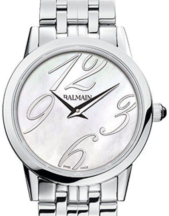 Женские часы Balmain De Balmainia B8551.33.84 кварцевый механизм с высокой точностью. Сапфировое стеклоСапфировое стеклоПрочный и надёжный материал из кристалла сапфира синтетического происхождения, характеризующийся особой твёрдостью и устойчивостью к царапинам и повреждениям. устойчивое к появлению царапин, обладающее высокой прозрачностью. Корпус изготовлен из нержавеющей стали. Класс водозащиты: 50 метров, позволит защитить корпус от случайных брызг или капель дождя. Стальной браслет на застёжке «бабочка» с кнопкамиЗастёжка "бабочка"Такой вид застёжки дополняется предохранителями, помогающими избежать случайного раскрытия браслета. Обладают изящным исполнением. .