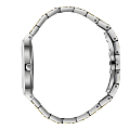 Часы дополнены стальным браслетом с частичным IP-покрытиемIP-покрытиеМетод ионного напыления. Демонстрирует повышенную устойчивость к истиранию, окислению и химическим веществам. Под воздействием высокого давления и температуры около 1500°C молекулы металла надёжно соединяются с частицами корпуса часов. и удобной застёжкой-бабочкойЗастёжка "бабочка"Такой вид застёжки дополняется предохранителями, помогающими избежать случайного раскрытия браслета. Обладают изящным исполнением. , обеспечивающей комфорт и надёжную фиксацию на руке.