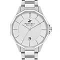 Американские мужские часы Beverly Hills Polo Club BP3375X.330 с минеральным стекломМинеральное стеклоМинеральное стекло представляет собой искусственно выращенный минерал кварца. Такое стекло отличается особой устойчивостью к повреждениям и царапинам. Уступает по некоторым качествам сапфировому стеклу., кварцевый механизм с высокой точностью. Класс водозащиты: 100 метров, позволит защитить корпус от случайных брызг или капель дождя. Корпус и браслет часов изготовлены из стали серебристого цвета. Браслет с раскладной застёжкойРаскладная застёжкаТакой тип застёжки используется только на браслетах из металла. Она никогда не раскрывается полностью, происходит разделение на 2 и более частей. Раскладывающая застёжка снизит вероятность потери часов к минимуму..