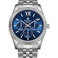 Циферблат оформлен с изысканной симметрией: три отдельных индикатора отображают день недели, дату и 24-часовой формат. Арабские цифры и декоративные акценты придают дизайну лёгкость и выразительность. Стрелки и метки обеспечивают удобное считывание показаний в течение дня.