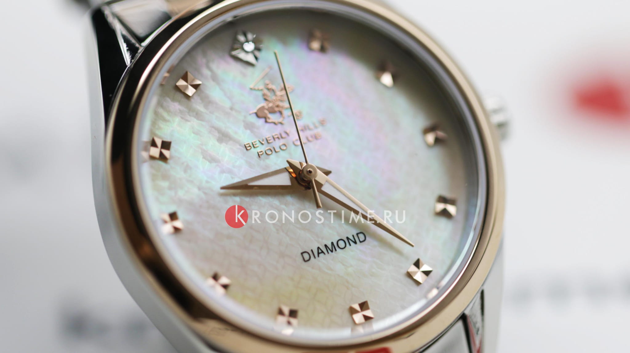 Женские часы Beverly Hills Polo BP3601C.510 из коллекции Quartz с бриллиантом на циферблате. Минеральное стеклоМинеральное стеклоМинеральное стекло представляет собой искусственно выращенный минерал кварца. Такое стекло отличается особой устойчивостью к повреждениям и царапинам. Уступает по некоторым качествам сапфировому стеклу. устойчивое к появлению царапин, обладающее высокой прозрачностью. Класс водозащиты: 50 метров, позволит защитить корпус от случайных брызг или капель дождя. Корпус и браслет часов изготовлены из нержавеющей стали. Стальной браслет на раскладной застёжкеРаскладная застёжкаТакой тип застёжки используется только на браслетах из металла. Она никогда не раскрывается полностью, происходит разделение на 2 и более частей. Раскладывающая застёжка снизит вероятность потери часов к минимуму.. Стрелки с люминесцентным покрытиемЛюминесцентное покрытиеПозволяет считывать показания времени в темноте. Производители наносят на стрелки, часовые индексы, безель или поверхность циферблата светонакопительный состав, дающий холодное свечение..