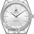 Мужские кварцевые часы Beverly Hills Polo Club — это идеальный выбор для ценителей минимализма и функциональности. Корпус диаметром 39 мм выполнен из нержавеющей стали. Циферблат серебристого цвета оформлен штрихами и стрелками. Циферблат защищён минеральным стекломМинеральное стеклоМинеральное стекло представляет собой искусственно выращенный минерал кварца. Такое стекло отличается особой устойчивостью к повреждениям и царапинам. Уступает по некоторым качествам сапфировому стеклу. с сапфировым покрытием. Часы оснащены стальным браслетом из нержавеющей стали на застёжке «бабочка» с кнопкамиЗастёжка "бабочка"Такой вид застёжки дополняется предохранителями, помогающими избежать случайного раскрытия браслета. Обладают изящным исполнением. . Водонепроницаемость 50 м позволяет использовать часы в повседневных условиях. Идеальный выбор для тех, кто ценит американское качество и универсальный дизайн.