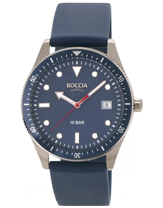 Мужские немецкие титановые часы Boccia Titanium 3664-02, кварцевый механизм с высокой точностью. Минеральное стеклоМинеральное стеклоМинеральное стекло представляет собой искусственно выращенный минерал кварца. Такое стекло отличается особой устойчивостью к повреждениям и царапинам. Уступает по некоторым качествам сапфировому стеклу. устойчивое к появлению царапин, обладающее высокой прозрачностью. Корпус изготовлен из титана. Окошко даты в положении 3 часов. Класс водозащиты: 100 метров, позволит защитить корпус от случайных брызг или капель дождя. Поворотный безель из титана с PVD-покрытиемPVDУльтратонкое покрытие наносится в технике вакуумного напыления, сочетает в себе нитрид титана особой прочности со слоем золота или оксида хрома. Несёт в себе декоративную или защитную функцию.. Каучуковый ремешок.
