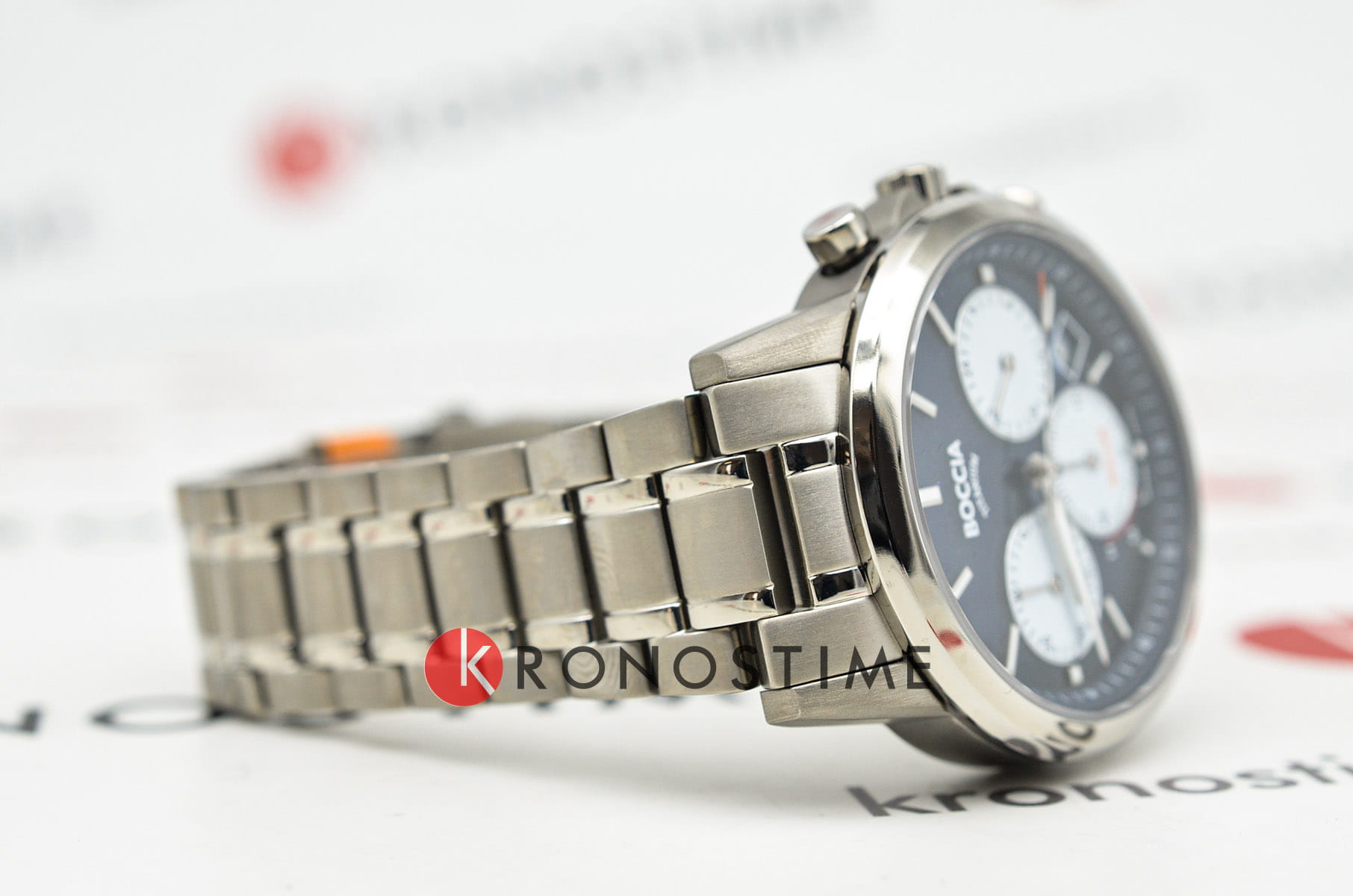 Мужские наручные часы-хронографХронографФункция позволяет измерять отрезки времени с особой точностью: часы, минуты, секунды. Верным признаком хронографа является наличие на циферблате 3 дополнительных окошек-счётчиков. Boccia Titanium 3742-03 с надёжным кварцевым механизмом. Корпус и браслет часов изготовлены из титана. Сапфировое стеклоСапфировое стеклоПрочный и надёжный материал из кристалла сапфира синтетического происхождения, характеризующийся особой твёрдостью и устойчивостью к царапинам и повреждениям. устойчивое к мелким механическим повреждениям. Окошко даты находится между 4 и 5 часов. Стрелки и метки с люминесцентным покрытиемЛюминесцентное покрытиеПозволяет считывать показания времени в темноте. Производители наносят на стрелки, часовые индексы, безель или поверхность циферблата светонакопительный состав, дающий холодное свечение.. Класс водозащиты: 100 метров, позволит плавать, нырять и заниматься другими водными видами спорта. Титановый браслет на раскладной застёжкеРаскладная застёжкаТакой тип застёжки используется только на браслетах из металла. Она никогда не раскрывается полностью, происходит разделение на 2 и более частей. Раскладывающая застёжка снизит вероятность потери часов к минимуму..