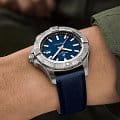 Мужские наручные часы Breitling Avenger Automatic 42 A17328101C1X1 с надёжным автоматическим механизмом. Сапфировое стеклоСапфировое стеклоПрочный и надёжный материал из кристалла сапфира синтетического происхождения, характеризующийся особой твёрдостью и устойчивостью к царапинам и повреждениям. повышенной прозрачности, устойчивое к мелким механическим повреждениям. Вращающийся безельБезельВнешний ободок, закрепляющий стекло. В спортивных часах так называется поворотное кольцо с делениями на циферблате, выполняет роль таймера – замеряет отрезки времени на шкале. Неподвижный безель – элемент декора. Однонаправленно вращающийся безель на дайверских часах позволяет фиксировать моменты погружения и выныривания на поверхность.. Окошко даты находится в положении 3 часа. Стрелки и метки с люминесцентным покрытиемЛюминесцентное покрытиеПозволяет считывать показания времени в темноте. Производители наносят на стрелки, часовые индексы, безель или поверхность циферблата светонакопительный состав, дающий холодное свечение.. Кожаный ремешок на стандартной застёжке. Класс водозащиты: 300 метров, позволит плавать, нырять и заниматься другими водными видами спорта.