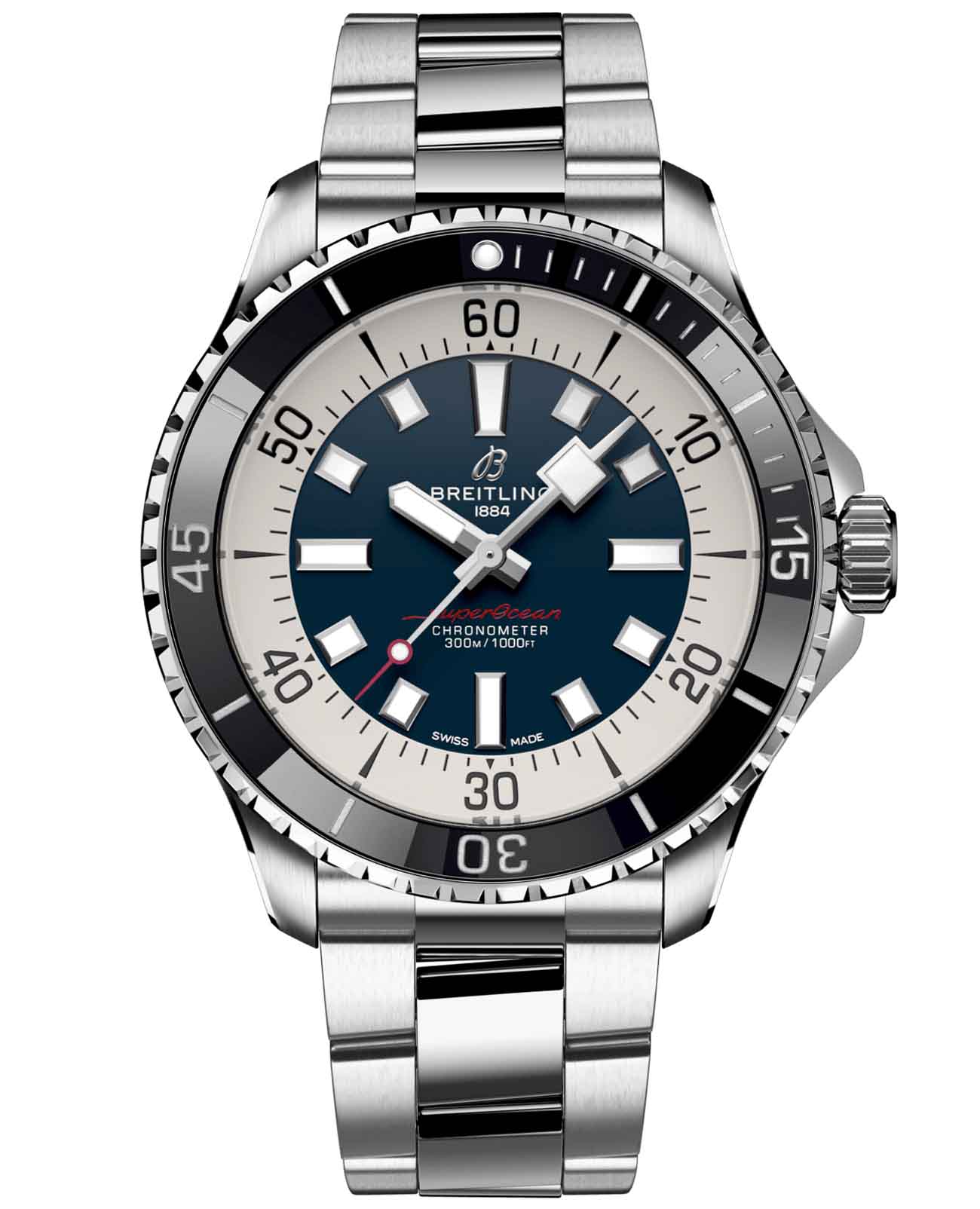 Мужские водонепроницаемые швейцарские часы Breitling Superocean Automatic 44 A17376211C1A1, механический механизм (автоматический калибр) с высокой точностью. Сапфировое стеклоСапфировое стеклоПрочный и надёжный материал из кристалла сапфира синтетического происхождения, характеризующийся особой твёрдостью и устойчивостью к царапинам и повреждениям. устойчивое к появлению царапин, обладающее высокой прозрачностью. Класс водозащиты: 300 метров, позволит плавать, нырять и заниматься другими водными видами спорта. Корпус часов изготовлен из стали. Стальной браслет с раскладной застёжкойРаскладная застёжкаТакой тип застёжки используется только на браслетах из металла. Она никогда не раскрывается полностью, происходит разделение на 2 и более частей. Раскладывающая застёжка снизит вероятность потери часов к минимуму.. Стрелки и метки с люминесцентным покрытиемЛюминесцентное покрытиеПозволяет считывать показания времени в темноте. Производители наносят на стрелки, часовые индексы, безель или поверхность циферблата светонакопительный состав, дающий холодное свечение.. Широкие стрелки и индексы с люминесцентным покрытиемЛюминесцентное покрытиеПозволяет считывать показания времени в темноте. Производители наносят на стрелки, часовые индексы, безель или поверхность циферблата светонакопительный состав, дающий холодное свечение. обеспечивают легкую читаемость под водой. БезельБезельВнешний ободок, закрепляющий стекло. В спортивных часах так называется поворотное кольцо с делениями на циферблате, выполняет роль таймера – замеряет отрезки времени на шкале. Неподвижный безель – элемент декора. Однонаправленно вращающийся безель на дайверских часах позволяет фиксировать моменты погружения и выныривания на поверхность. из стали с керамической инкрустацией, защищенный от царапин, никогда не изнашивается и не выцветает. Лучше всего то, что это больше не просто часы для дайвинга — занимайтесь с ними серфингом, плавайте с ними, заходите с ними в пляжный бар, а затем надевайте их на ужин. Superocean идеально сочетает ностальгию по своему наследию со свежим внешним видом.