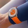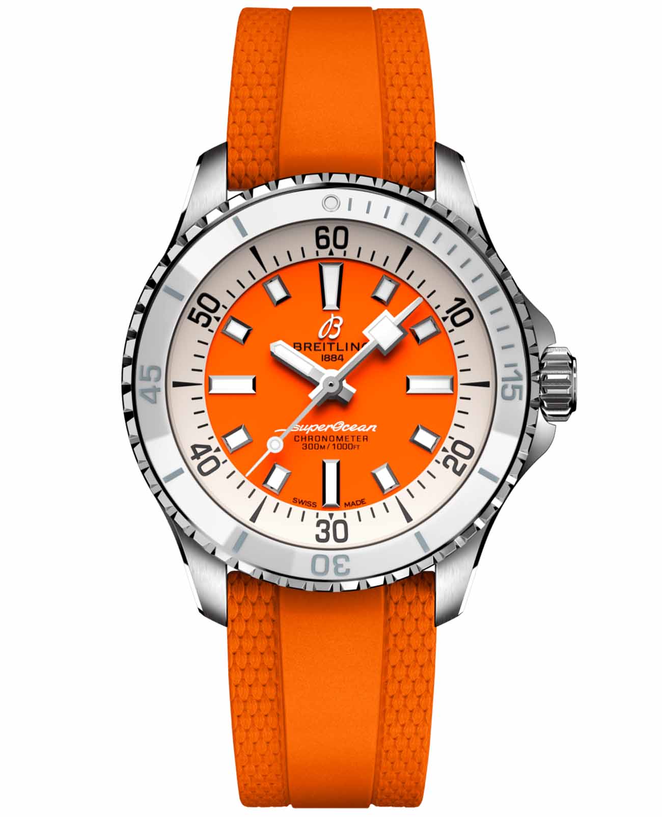 Унисекс водонепроницаемые швейцарские часы Breitling Superocean Automatic 36 A17377211O1S1, механический механизм (автоматический калибр) с высокой точностью. Сапфировое стеклоСапфировое стеклоПрочный и надёжный материал из кристалла сапфира синтетического происхождения, характеризующийся особой твёрдостью и устойчивостью к царапинам и повреждениям. устойчивое к появлению царапин, обладающее высокой прозрачностью. Класс водозащиты: 300 метров, позволит плавать, нырять и заниматься другими водными видами спорта. Корпус часов изготовлен из стали. Силиконовый ремешок с раскладной застёжкойРаскладная застёжкаТакой тип застёжки используется только на браслетах из металла. Она никогда не раскрывается полностью, происходит разделение на 2 и более частей. Раскладывающая застёжка снизит вероятность потери часов к минимуму.. Два варианта ремешка (резиновый и металлический браслет) имеют складывающуюся застежку, которая позволяет осуществлять микрорегулировку до 15 мм для удобства ношения поверх гидрокостюмов. Новый Superocean повторяет знаменитые дизайнерские коды Slow Motion, добавляя при этом современные элементы, такие как безель с керамической вставкой и яркие циферблаты. Стрелки и метки с люминесцентным покрытиемЛюминесцентное покрытиеПозволяет считывать показания времени в темноте. Производители наносят на стрелки, часовые индексы, безель или поверхность циферблата светонакопительный состав, дающий холодное свечение.. Широкие стрелки и индексы с люминесцентным покрытиемЛюминесцентное покрытиеПозволяет считывать показания времени в темноте. Производители наносят на стрелки, часовые индексы, безель или поверхность циферблата светонакопительный состав, дающий холодное свечение. обеспечивают легкую читаемость под водой. Вращающийся стальной безельБезельВнешний ободок, закрепляющий стекло. В спортивных часах так называется поворотное кольцо с делениями на циферблате, выполняет роль таймера – замеряет отрезки времени на шкале. Неподвижный безель – элемент декора. Однонаправленно вращающийся безель на дайверских часах позволяет фиксировать моменты погружения и выныривания на поверхность. с люминесцентным покрытиемЛюминесцентное покрытиеПозволяет считывать показания времени в темноте. Производители наносят на стрелки, часовые индексы, безель или поверхность циферблата светонакопительный состав, дающий холодное свечение. Superluminova из нержавеющей стали и керамики, защищенный от царапин, никогда не изнашивается и не выцветает. Лучше всего то, что это больше не просто часы для дайвинга — занимайтесь с ними серфингом, плавайте с ними, заходите с ними в пляжный бар, а затем надевайте их на ужин. Superocean идеально сочетает ностальгию по своему наследию со свежим внешним видом.