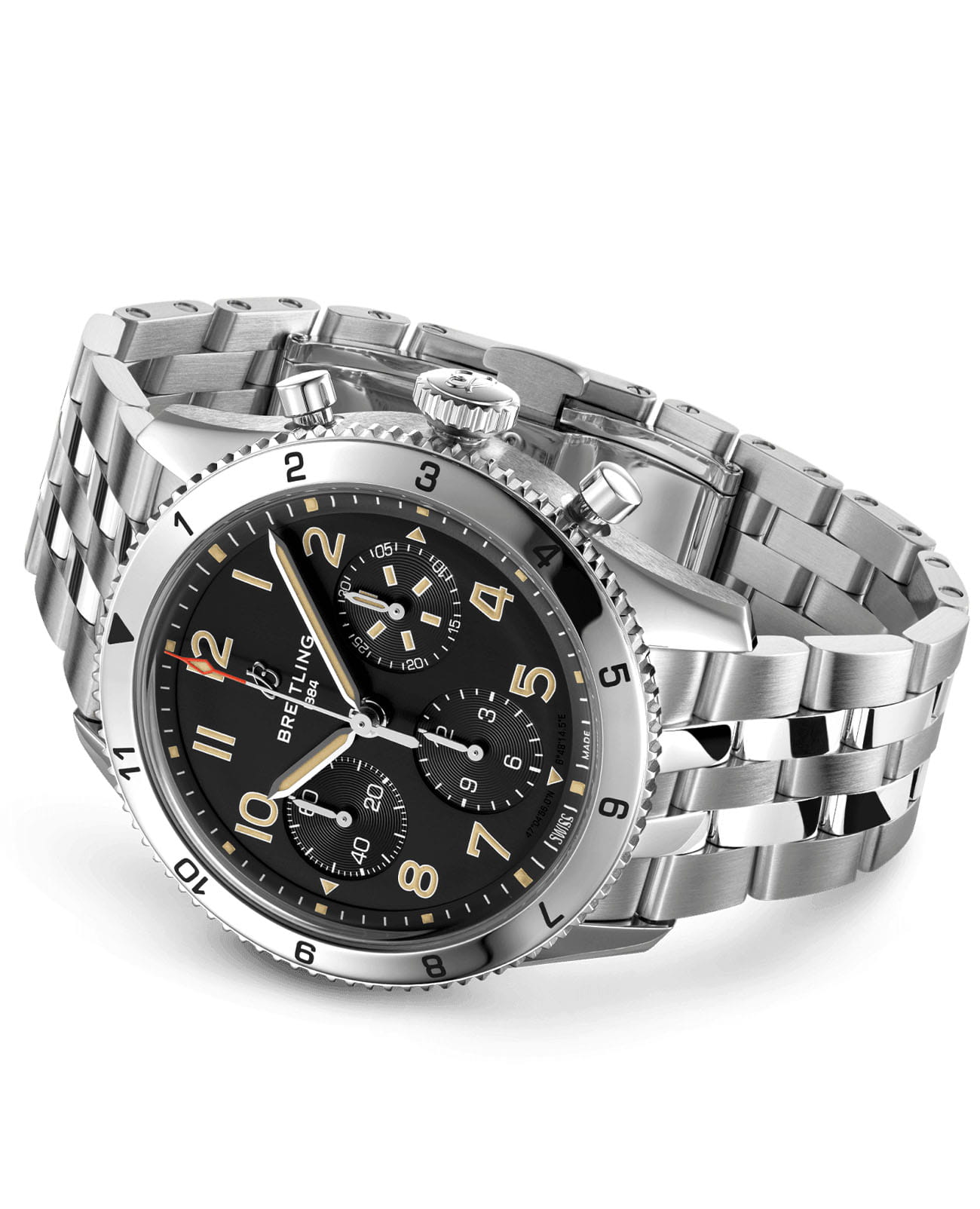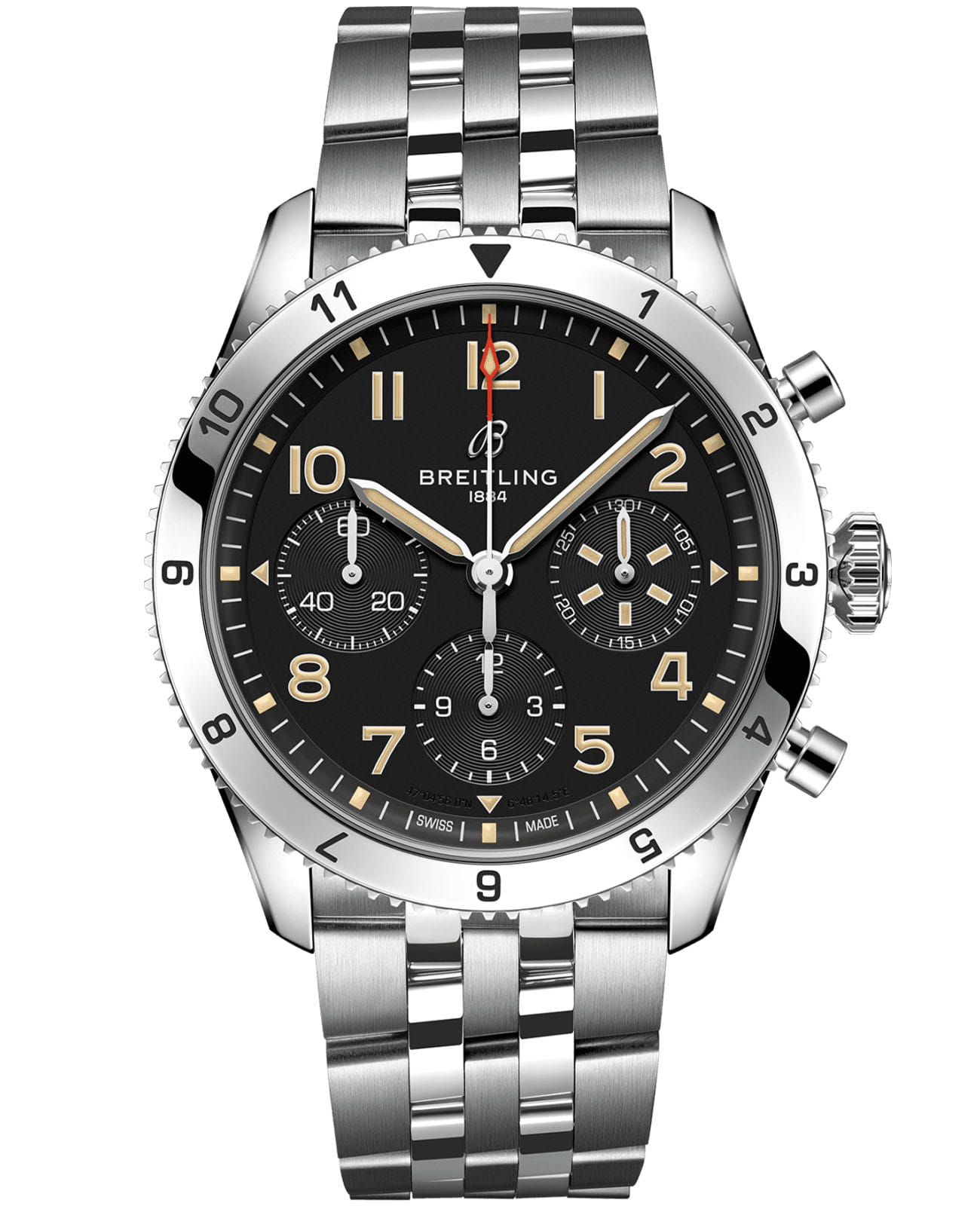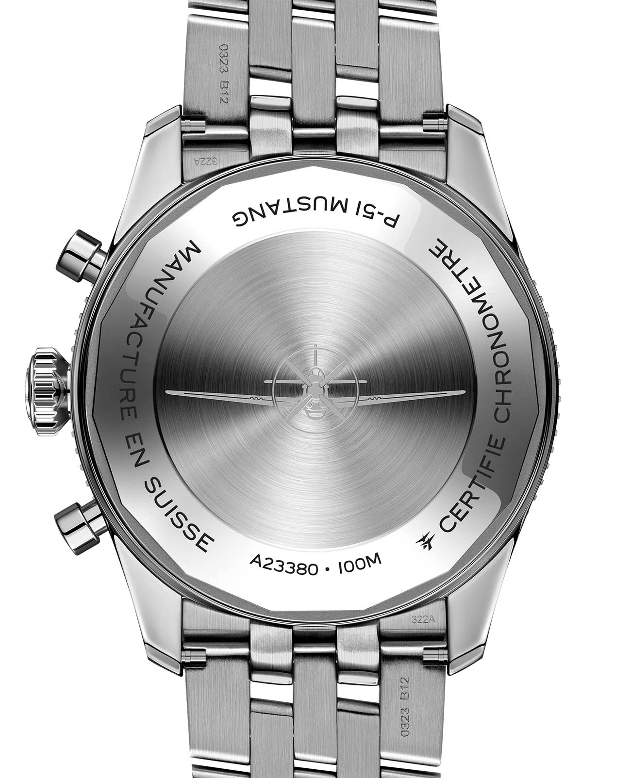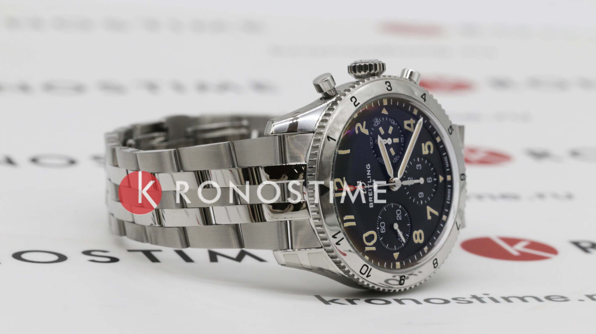 Мужские швейцарские часы-хронографХронографФункция позволяет измерять отрезки времени с особой точностью: часы, минуты, секунды. Верным признаком хронографа является наличие на циферблате 3 дополнительных окошек-счётчиков. Breitling Classic Avi Chronograph 42 P-51 Mustang A233803A1B1A1, механический механизм (автоматический калибр) с высокой точностью. Сапфировое стеклоСапфировое стеклоПрочный и надёжный материал из кристалла сапфира синтетического происхождения, характеризующийся особой твёрдостью и устойчивостью к царапинам и повреждениям. с антибликовым покрытием устойчивое к появлению царапин, обладающее высокой прозрачностью. Класс водозащиты: 100 метров, позволит плавать, нырять и заниматься другими водными видами спорта. Корпус часов изготовлен из нержавеющей стали. Стальной браслет на раскладной застёжкеРаскладная застёжкаТакой тип застёжки используется только на браслетах из металла. Она никогда не раскрывается полностью, происходит разделение на 2 и более частей. Раскладывающая застёжка снизит вероятность потери часов к минимуму.. Стрелки с люминесцентным покрытиемЛюминесцентное покрытиеПозволяет считывать показания времени в темноте. Производители наносят на стрелки, часовые индексы, безель или поверхность циферблата светонакопительный состав, дающий холодное свечение.. Секундомер.