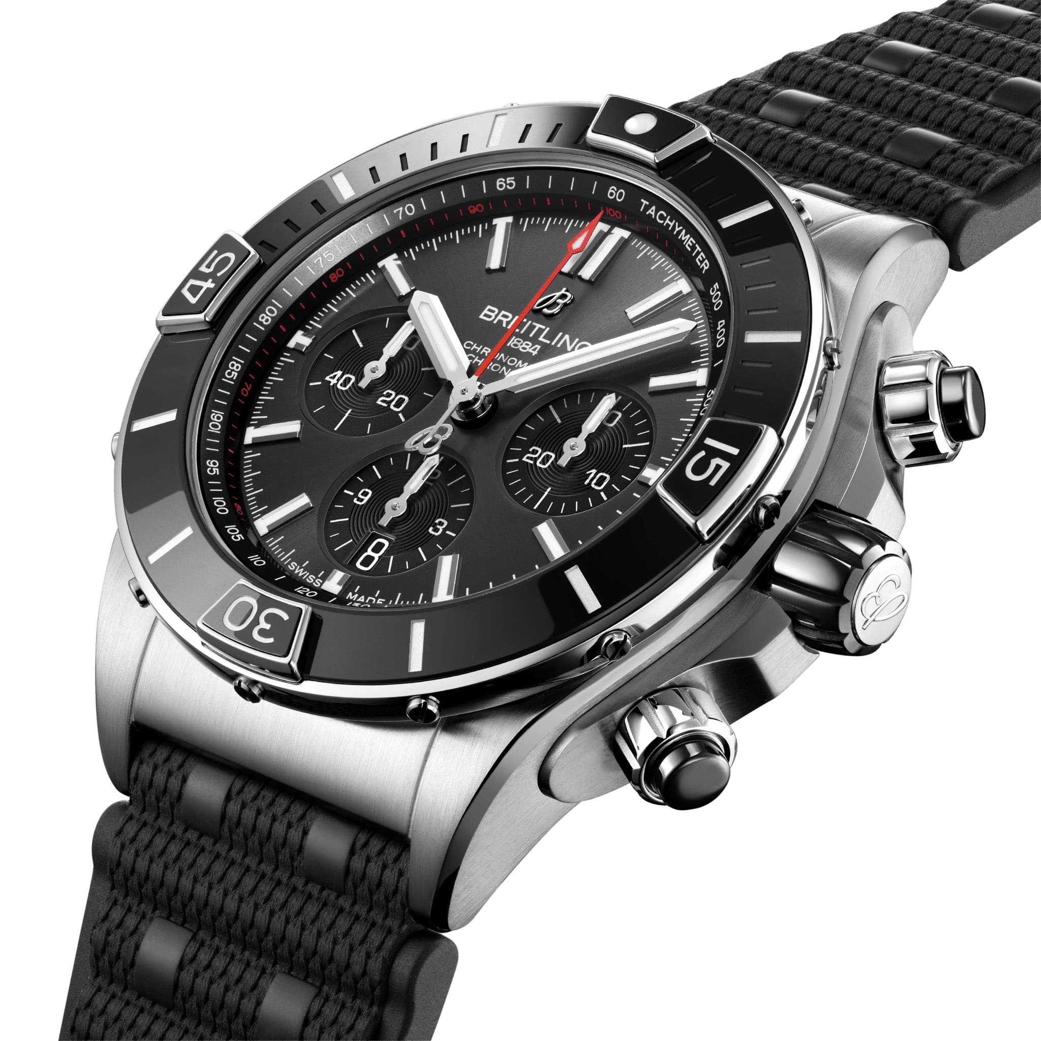 Образ завершают культовый браслет или каучуковый ремешок в стиле Rouleaux с раскладной застежкой. «Сердце» часов Super Chronomat B01 44 – мануфактурный механизм Breitling 01, сертифицированный Швейцарским институтом официального тестирования хронометров (COSC).