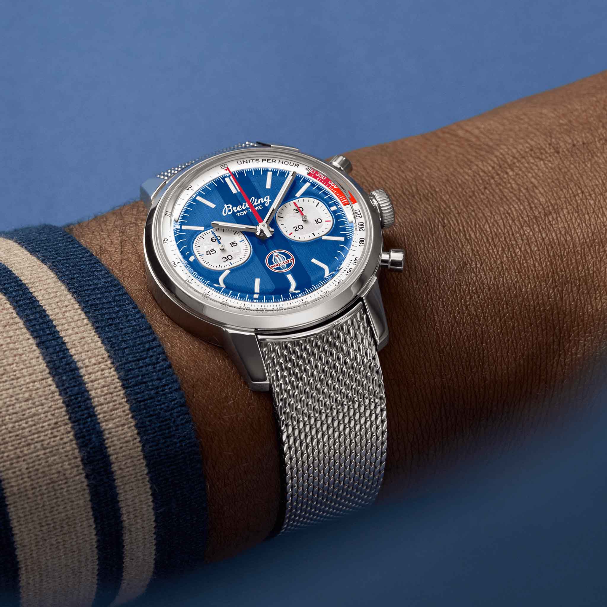 Мужские швейцарские часы-хронографХронографФункция позволяет измерять отрезки времени с особой точностью: часы, минуты, секунды. Верным признаком хронографа является наличие на циферблате 3 дополнительных окошек-счётчиков. с тахиметромТахиметрРазмеченная шкала, располагается на ободке или безеле часов. Тахиметр позволяет рассчитать скорость на определённом участке пути, расстояние измеряется в километрах или милях. Breitling Top Time B01 Shelby Cobra AB01763A1C1A1, механический механизм (автоматический калибр) с высокой точностью. Сапфировое стеклоСапфировое стеклоПрочный и надёжный материал из кристалла сапфира синтетического происхождения, характеризующийся особой твёрдостью и устойчивостью к царапинам и повреждениям. устойчивое к появлению царапин, обладающее высокой прозрачностью. Класс водозащиты: 100 метров, позволит плавать, нырять и заниматься другими водными видами спорта. Корпус часов изготовлен из стали. Стрелки и метки с люминесцентным покрытиемЛюминесцентное покрытиеПозволяет считывать показания времени в темноте. Производители наносят на стрелки, часовые индексы, безель или поверхность циферблата светонакопительный состав, дающий холодное свечение.. Стальной браслет с застёжкой-бабочкой с кнопкамиЗастёжка "бабочка"Такой вид застёжки дополняется предохранителями, помогающими избежать случайного раскрытия браслета. Обладают изящным исполнением. . Неподвижный безельБезельВнешний ободок, закрепляющий стекло. В спортивных часах так называется поворотное кольцо с делениями на циферблате, выполняет роль таймера – замеряет отрезки времени на шкале. Неподвижный безель – элемент декора. Однонаправленно вращающийся безель на дайверских часах позволяет фиксировать моменты погружения и выныривания на поверхность..