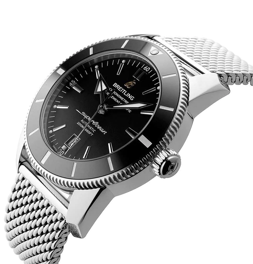 Модель Superocean Heritage, выполненная в стилистике SuperOcean 50-х годов, сочетает в себе функции современных часов и оригинальный дизайн, в котором угадываются характерные черты исторического прототипа. Спортивные и элегантные Superocean Heritage служат символом активного образа жизни, неразрывно связанного с морем. Эта изысканная модель для дайверов отличается необычными стрелками треугольной формы и оснащена вращающимся в одном направлении безелем с полированным керамическим кольцом.