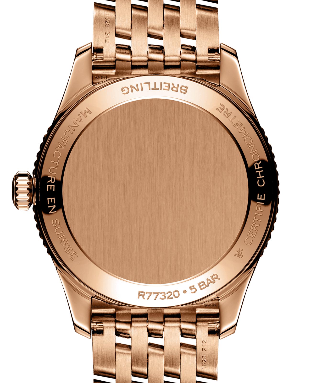 Швейцарские унисекс часы-хронометр Breitling Navitimer Automatic 32 R77320E61A1R1, механический механизм (автоматический калибр) с высокой точностью. Сапфировое стеклоСапфировое стеклоПрочный и надёжный материал из кристалла сапфира синтетического происхождения, характеризующийся особой твёрдостью и устойчивостью к царапинам и повреждениям. устойчивое к появлению царапин, обладающее высокой прозрачностью. Класс водозащиты: 50 метров, позволит защитить корпус от случайных брызг или капель дождя. Корпус и браслет часов изготовлены из красного 18-каратного золота18-каратное золотоОбозначение по каратной системе пробирования, оно показывает, сколько драгоценного металла содержится в изделии. 18 карат - в составе 75% чистого золота, соответствует 750 пробе.