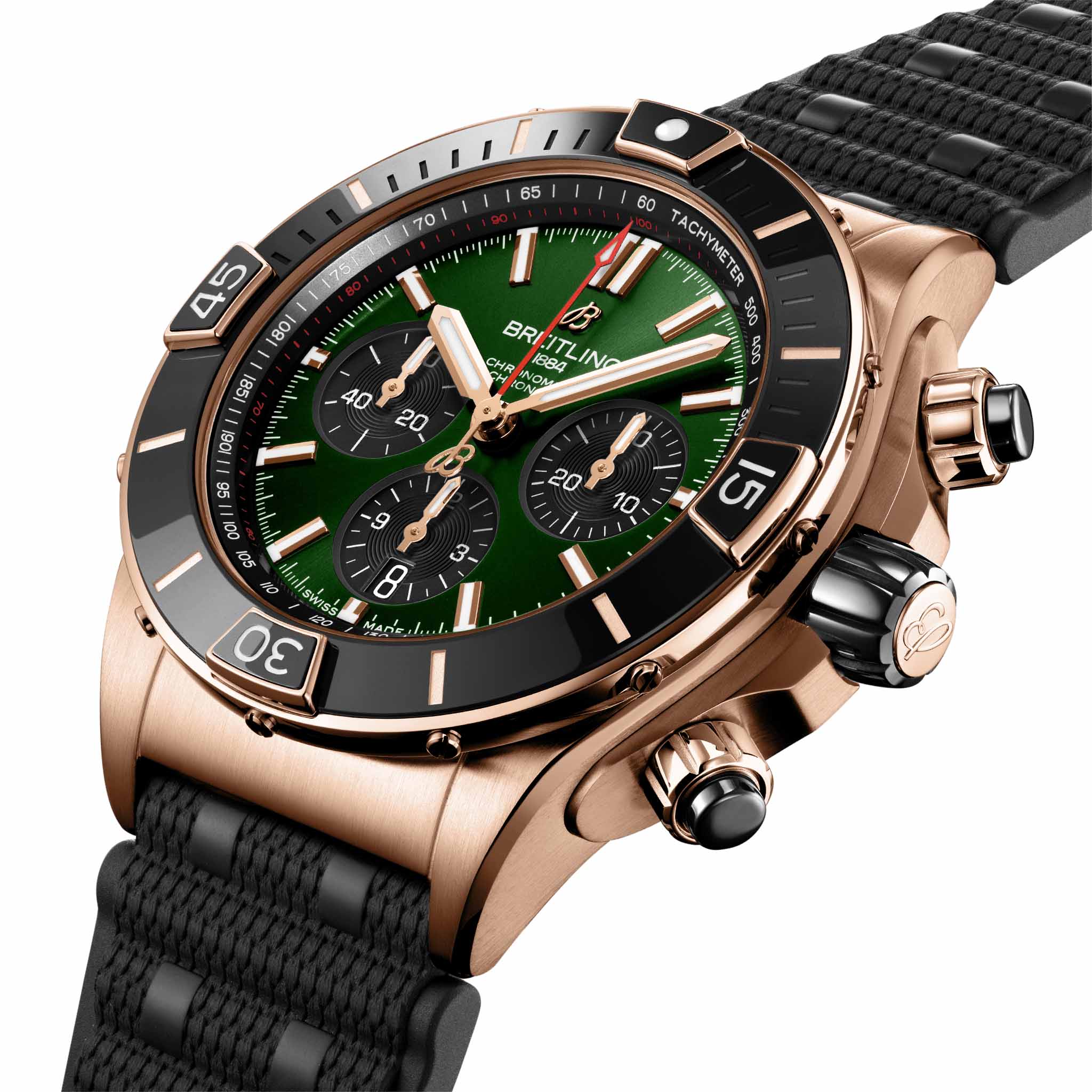 Обладающие наиболее смелым дизайном из всех моделей коллекции Chronomat, часы Super Chronomat отличаются кармической инкрустацией на безеле, кнопках хронографа и заводной головке. Кроме того, их дополняет каучуковый ремешок в стиле Rouleaux. Эти универсальные спортивные часы подчеркнут ваш безупречный вкус. Модель Super Chronomat представлена в нескольких цветовых вариациях и выполнена из различных материалов: от нержавеющей стали до 18-каратного красного золота.