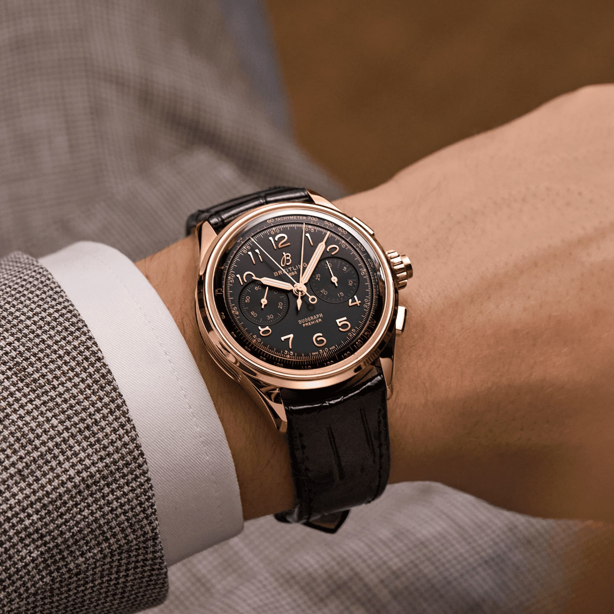 Созданный в знак уважения к трем поколениям изобретателей – Леону, Гастону и Вилли Брайтлингам – сплит-хронограф Premier Duograph демонстрирует высочайший уровень часового мастерства Breitling.