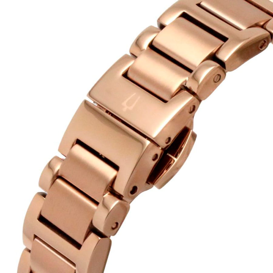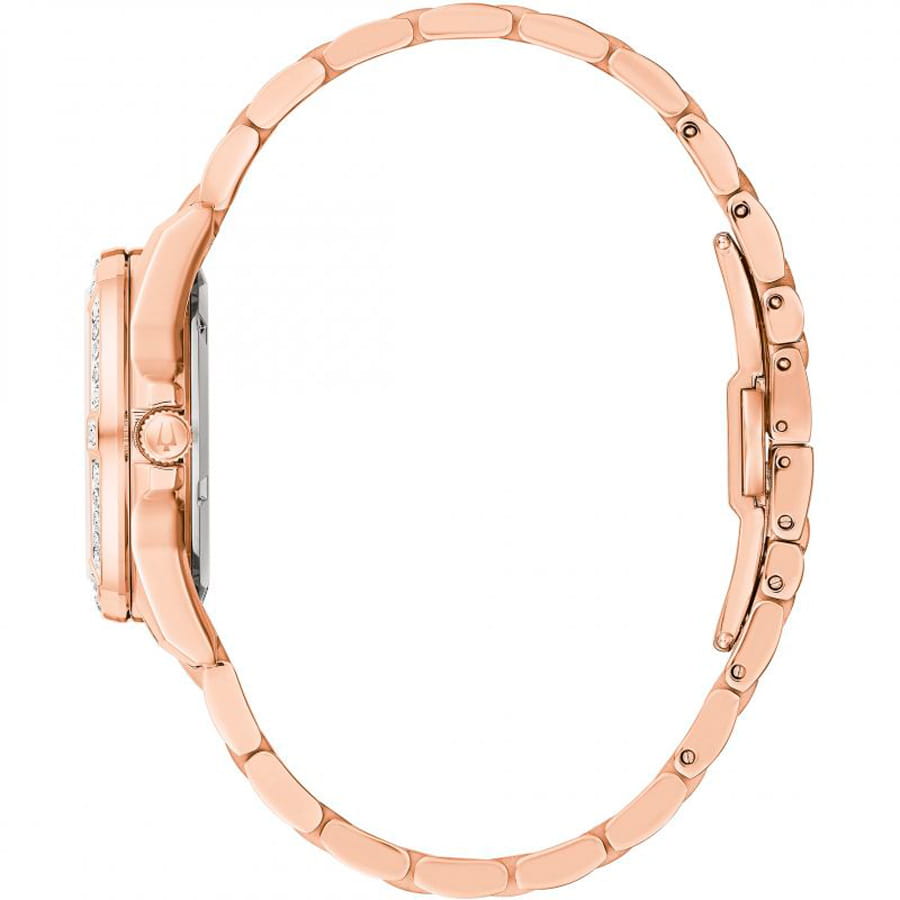 Женские кварцевые часы Bulova Marine Star 98R295 – отражающий идеальное сочетание современного дизайна, надёжности и функциональности. Элегантный облик станет превосходным завершением образа, наделив его индивидуальным характером. Корпус из нержавеющей стали с IP-покрытиемIP-покрытиеМетод ионного напыления. Демонстрирует повышенную устойчивость к истиранию, окислению и химическим веществам. Под воздействием высокого давления и температуры около 1500°C молекулы металла надёжно соединяются с частицами корпуса часов., диаметром 32 мм, украшен бриллиантами по безелюБезельВнешний ободок, закрепляющий стекло. В спортивных часах так называется поворотное кольцо с делениями на циферблате, выполняет роль таймера – замеряет отрезки времени на шкале. Неподвижный безель – элемент декора. Однонаправленно вращающийся безель на дайверских часах позволяет фиксировать моменты погружения и выныривания на поверхность., идеально сбалансирован и элегантен. Сапфировое стеклоСапфировое стеклоПрочный и надёжный материал из кристалла сапфира синтетического происхождения, характеризующийся особой твёрдостью и устойчивостью к царапинам и повреждениям. защищает циферблат от царапин и устойчивое к мелким механическим повреждениям. Стальной браслет с IP-покрытиемIP-покрытиеМетод ионного напыления. Демонстрирует повышенную устойчивость к истиранию, окислению и химическим веществам. Под воздействием высокого давления и температуры около 1500°C молекулы металла надёжно соединяются с частицами корпуса часов. на застёжке-бабочке с кнопкамиЗастёжка "бабочка"Такой вид застёжки дополняется предохранителями, помогающими избежать случайного раскрытия браслета. Обладают изящным исполнением. обеспечивает комфортное ношение. Стрелки с люминесцентным покрытиемЛюминесцентное покрытиеПозволяет считывать показания времени в темноте. Производители наносят на стрелки, часовые индексы, безель или поверхность циферблата светонакопительный состав, дающий холодное свечение.. Апертура даты в позиции 3 часов. Водозащита 100 метров, позволит плавать, нырять и заниматься другими водными видами спорта. Эта модель – отличный выбор для тех, кто ищет сочетание стиля, качества и функциональности. Часы станут не только полезным аксессуаром, но и выразительным элементом вашего имиджа.