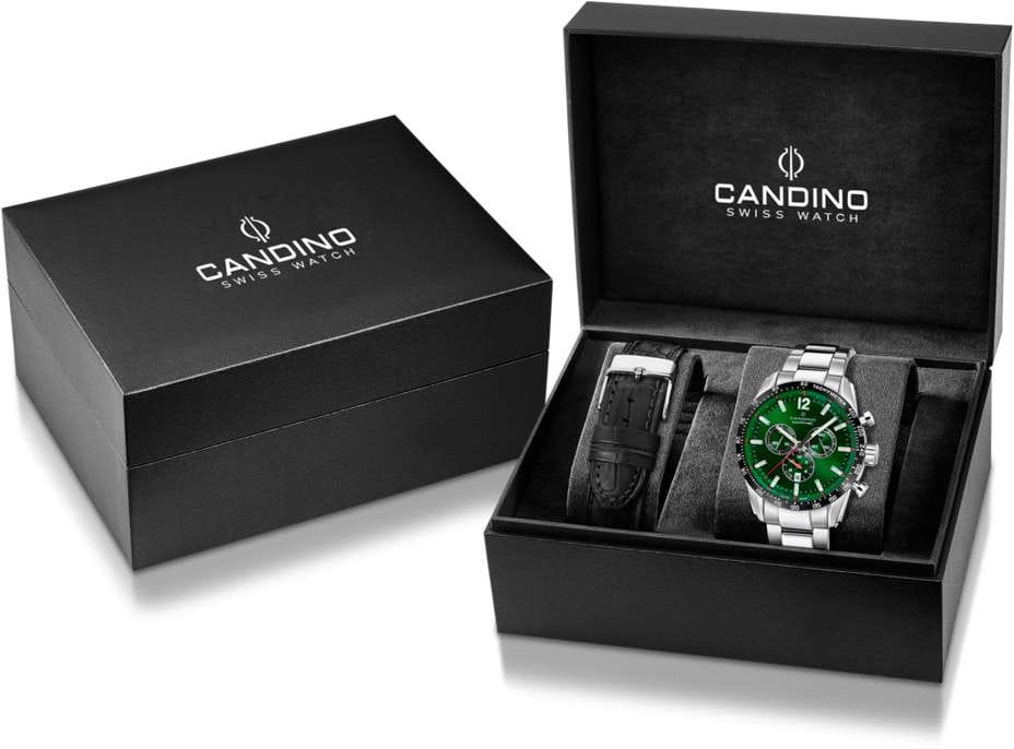 Мужские наручные часы-хронографХронографФункция позволяет измерять отрезки времени с особой точностью: часы, минуты, секунды. Верным признаком хронографа является наличие на циферблате 3 дополнительных окошек-счётчиков. Candino C4757/C из коллекции Gents Sport сочетают в себе спортивный дизайн и надежность швейцарских технологий. Модель обладает круглым корпусом диаметром 45 мм, изготовленным из нержавеющей стали , что обеспечивает высокую устойчивость к коррозии и внешним воздействиям . Браслет выполнен из нержавеющей стали с раскладной застежкойРаскладная застёжкаТакой тип застёжки используется только на браслетах из металла. Она никогда не раскрывается полностью, происходит разделение на 2 и более частей. Раскладывающая застёжка снизит вероятность потери часов к минимуму., гарантирующей комфортное ношение и безопасность . Серебристый циферблат оснащен окном даты и функцией люминесцентного покрытияЛюминесцентное покрытиеПозволяет считывать показания времени в темноте. Производители наносят на стрелки, часовые индексы, безель или поверхность циферблата светонакопительный состав, дающий холодное свечение., что позволяет легко считывать показания времени даже в темноте . Для защиты используется сапфировое стеклоСапфировое стеклоПрочный и надёжный материал из кристалла сапфира синтетического происхождения, характеризующийся особой твёрдостью и устойчивостью к царапинам и повреждениям., обеспечивающее прочную защиту от царапин и долговечность . Часы работают на кварцевом механизме, проверенном годами качеством и точностью . Модель также является хронографом, оснащенным функцией секундомераСекундомерСекундоме́р — прибор, способный измерять интервалы времени с точностью до долей секунды., делая ее идеальной для активного образа жизни. Водонепроницаемость часов достигает 10 атмосфер (100 метров), что позволяет использовать их во время плавания и других водных видов спорта .
