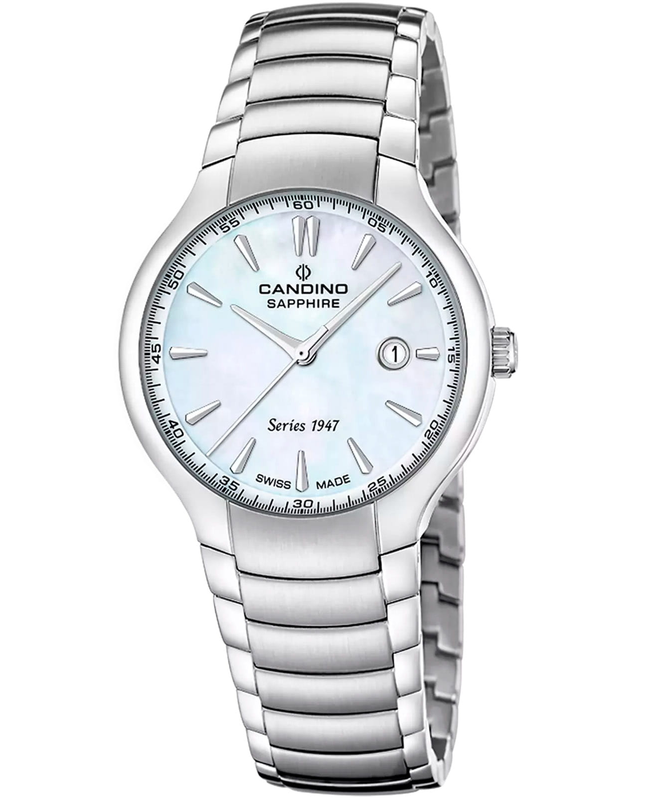 Женские кварцевые часы Candino — это сочетание элегантности и швейцарского качества. Корпус диаметром 34 мм и толщиной 8,6 мм выполнен из нержавеющей стали 316L. Циферблат голубого цвета оформлен индексами, придающими изделию изысканность. Окошко даты расположено в положении 3 часов. Циферблат защищён сапфировым стекломСапфировое стеклоПрочный и надёжный материал из кристалла сапфира синтетического происхождения, характеризующийся особой твёрдостью и устойчивостью к царапинам и повреждениям., устойчивым к царапинам. Механизм — кварцевый, произведённый в Швейцарии. Часы оснащены стальным браслетом на застёжке «бабочка» с кнопкамиЗастёжка "бабочка"Такой вид застёжки дополняется предохранителями, помогающими избежать случайного раскрытия браслета. Обладают изящным исполнением. . Водонепроницаемость 100 м позволяет использовать часы для плавания и повседневного ношения. Гарантия — 2 года. Идеальный выбор для тех, кто ценит стиль, точность и надёжность.