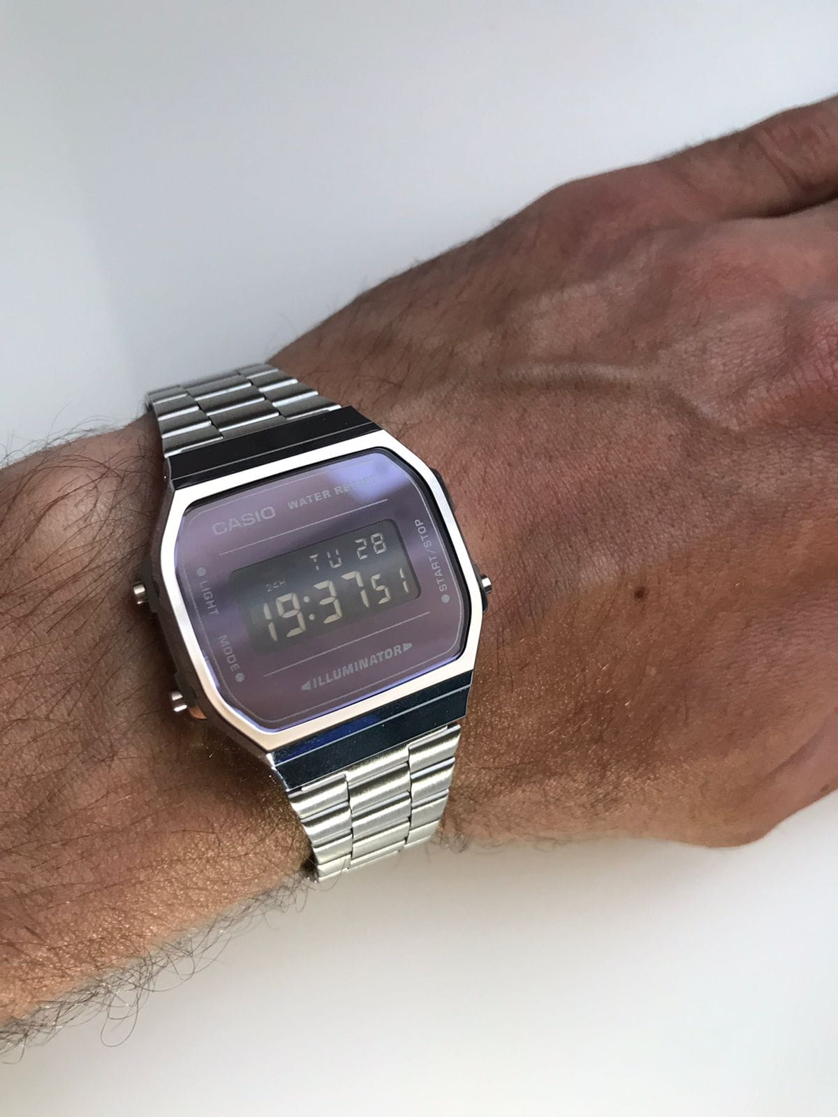 Корпус из прочного полимерного пластика имеет легендарную 8-угольную форму, компактный аксессуар одинаково хорошо смотрится как с офисной рубашкой, так и с повседневной футболкой. Электронный дисплей имеет подсветку, его надёжную защиту от повреждений обеспечивает минеральное стекло. Браслет из нержавеющей стали 316L на долгие годы сохранит первоначальный вид. Будильник, автоматический календарь. Габариты: 38,6 x 36,3 x 9,6 мм.