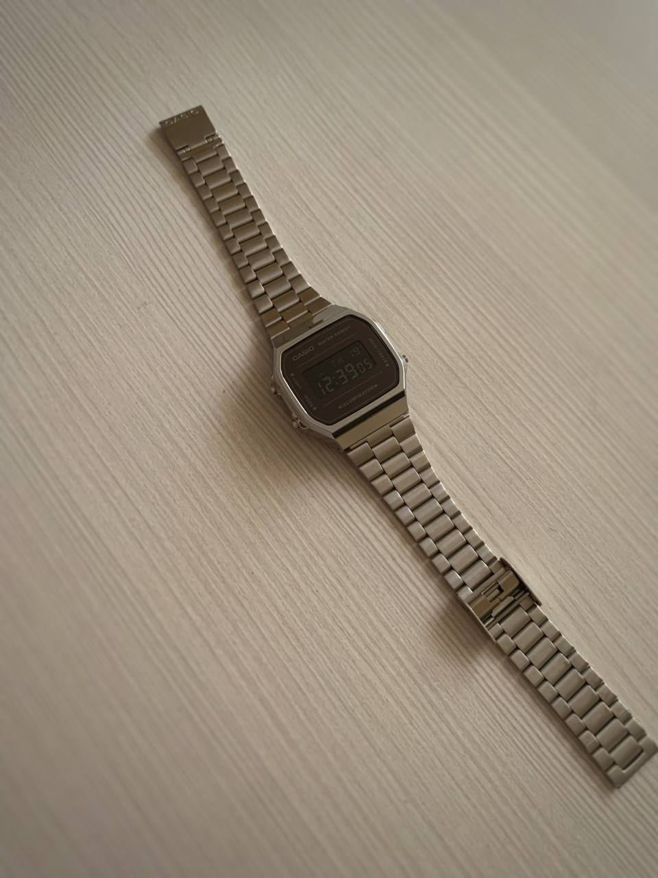 Будильник, календарь и даже цифры есть, браслет из стали, хорошо смотрятся как с футболкой, так и с офисной рубашкой.