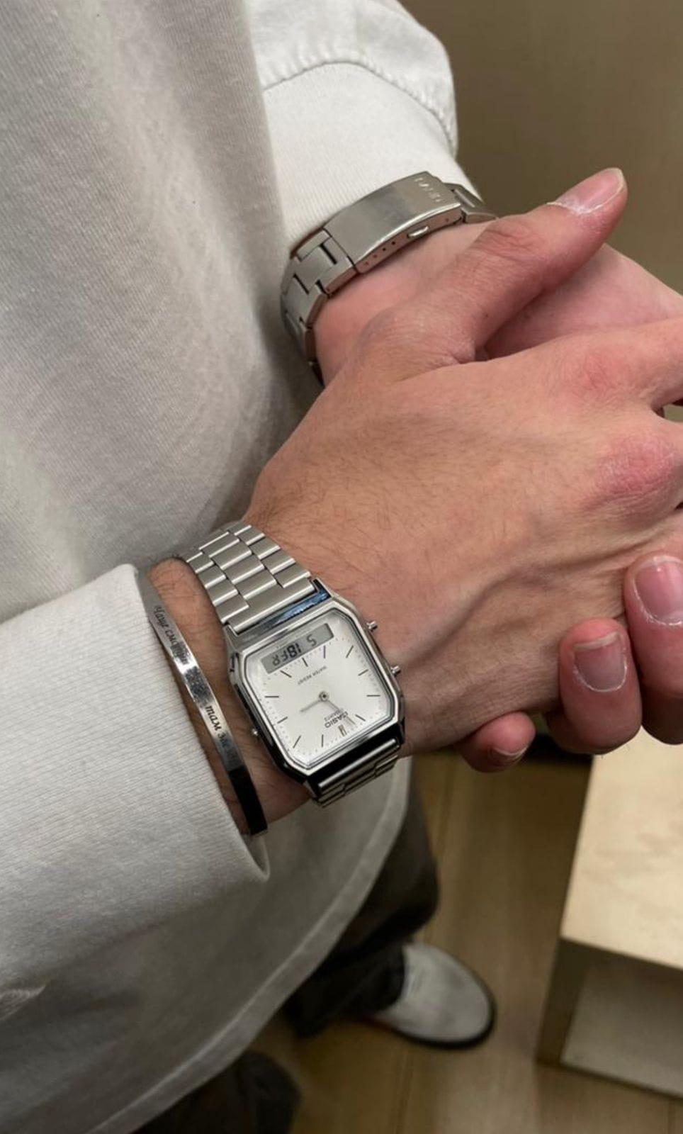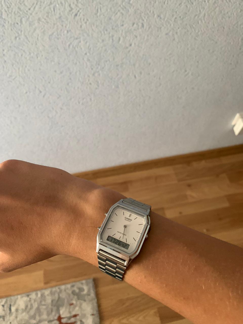 Часы хорошо сидят на руке. Элегантный браслет, выполненный из нержавеющей стали, классического плетения надёжный и прочный в повседневной носке. Застёжка легко регулируется по обхвату руки. Корпус выполнен из пластика. Есть будильник, секундомер, автоматический календарь.