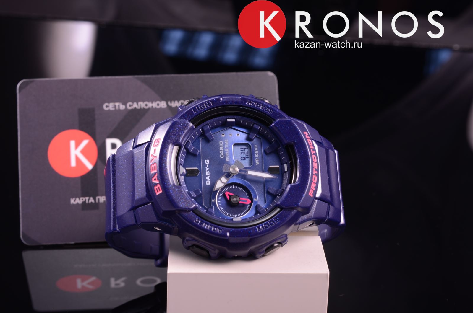 Привлекательно смотрится ударопрочный корпусУдаропрочный корпусМеханизм заключён в корпус, выполненный из современных материалов, устойчивых к ударам, механическим повреждениям и падению с высоты: инновационный пластик, карбон, нержавеющая сталь, титан. цвета синий металлик с глянцевым блеском. Модель оснащена усложнением Dual Time, что позволяет отображать время одновременно в двух часовых поясах. Функцию непременно оценят любительницы путешествий. Энергия от батарейки SR726W ( срок службы 2 года) питает японский кварцевый механизм. Включение и выключение звука кнопок. Светодиодная подсветкаСветодиодная подсветкаСветодиодная или LED-подсветка обеспечивает появление яркого холодного свечения за счёт LED-элементов - маленьких лампочек. Они потребляют минимальное количество энергии, чаще всего можно встретить 1 светодиод, в нижней части циферблата. циферблата, стрелки с покрытием NeobriteПодсветка NeobriteИспользование светонакопительных составов на основе сульфида цинка или алюмината стронция, яркий свет можно наблюдать на протяжении 6-10 часов после «зарядки» часов около источника света.. Минеральное стеклоМинеральное стеклоМинеральное стекло представляет собой искусственно выращенный минерал кварца. Такое стекло отличается особой устойчивостью к повреждениям и царапинам. Уступает по некоторым качествам сапфировому стеклу. устойчивое к мелким механическим повреждениям. Водонепроницаемость 100 метров. Ежечасный сигнал. Будильник, вечный календарьВечный календарьКлассическое часовое усложнение, представляющее собой календарь, рассчитанный на несколько лет вперёд (стандартно – до 2099 года). Определяет текущую дату, день недели, месяц., таймерТаймерОтсчитывает секунды в обратном направлении в заданном интервале времени., мировое времяМировое время Полезное часовое усложнение, отображающее время в основных городах и известных областях по всему миру, оно связано с часовыми поясами, удобно для путешественников и бизнесменов. – 31 часовой пояс, секундомерСекундомерСекундоме́р — прибор, способный измерять интервалы времени с точностью до долей секунды., UTCUTCВсемирное кординационное время, не имеющее привязки к географическому положению Гринвича, основывается на атомном отсчёте времени. Регулировка времени осуществляется более точно, чем устаревшее GMT.