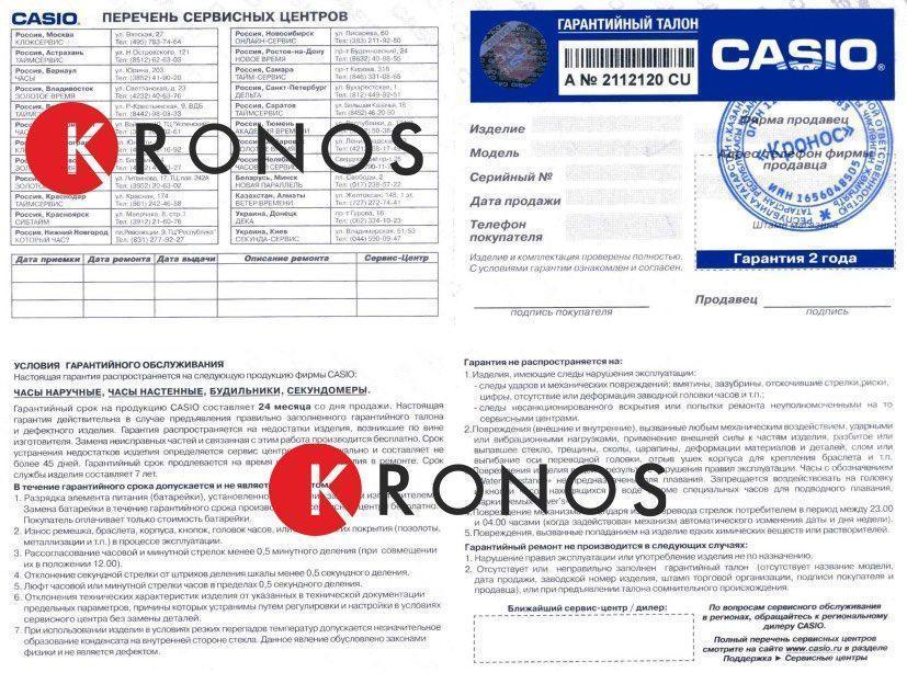 Официальная гарантия Casio 1 год