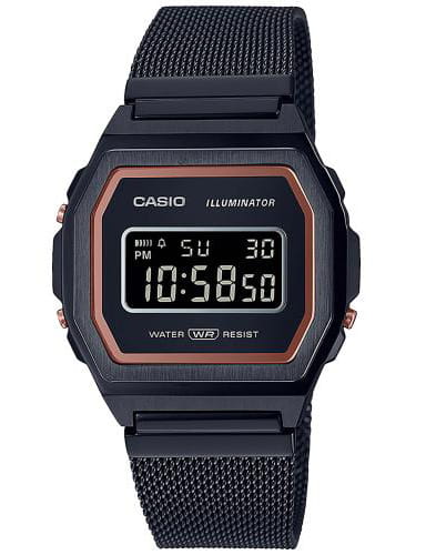 Японские мужские наручные часы Casio Collection A1000MB-1B, электронный механизм с высокой точностью. Класс водозащиты: 50 метров, позволит защитить корпус от случайных брызг или капель дождя. Корпус часов изготовлен из стали, цвета.