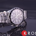 Высокоточный хронографХронографФункция позволяет измерять отрезки времени с особой точностью: часы, минуты, секунды. Верным признаком хронографа является наличие на циферблате 3 дополнительных окошек-счётчиков. в серебристо-чёрном исполнении понравится поклонникам автомобильной тематики. Тёмный циферблат с отдельными мини-счётчиками отличается крупной индикацией времени, позволяя без затруднений считывать показатели даже при мимолётном взгляде на дисплей. Кварцевый механизм получает энергию за счёт батарейки, рассчитанной на 2 года работы. Люминесцентная подсветкаЛюминесцентное покрытиеПозволяет считывать показания времени в темноте. Производители наносят на стрелки, часовые индексы, безель или поверхность циферблата светонакопительный состав, дающий холодное свечение.. Закалённое минеральное стекло. Водостойкость до 100 метров. Предохранительная застёжка. Секундомер, тахиметрТахиметрРазмеченная шкала, располагается на ободке или безеле часов. Тахиметр позволяет рассчитать скорость на определённом участке пути, расстояние измеряется в километрах или милях.. Габариты: 44,5 x 51,5 x 11,2 мм.