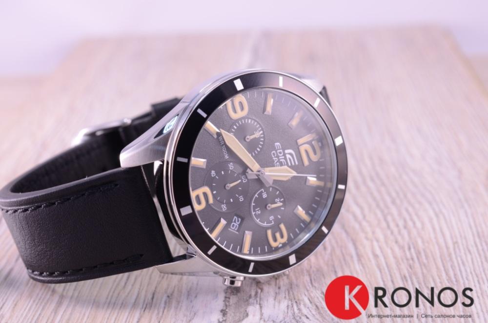 Мужские классические наручные часы Casio Edifice надежные и практичные. Кварцевый японский механизм Miyota. Точность хода не хуже -10 +15 сек./в месяц. Часы оснащены функцией хронографа. Циферблат черного цвета с контрастными индексами. Стрелки и индексы с светонакопительным нанесением. Корпус выполнен из нержавеющей стали. Ремешок из натуральной кожи, черного цвета. Минеральное стекло устойчиво к появлению царапин Водонепроницаемость 100М. В часах можно плавать. Степень водонепроницаемости не является величиной, эквивалентной функциональной рабочей глубине.