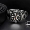Сдержанный тёмный циферблат украшен оранжевыми деталями, такая цветовая гамма отлично гармонирует с серебристым блеском нержавеющей стали 316L. Спортивный стиль модели выглядит динамично, все взгляды окружающих будут направлены на ваше запястье. Кварцевый механизм получает питание от батарейки, рассчитанной на 2 года. Ударопрочный корпусУдаропрочный корпусМеханизм заключён в корпус, выполненный из современных материалов, устойчивых к ударам, механическим повреждениям и падению с высоты: инновационный пластик, карбон, нержавеющая сталь, титан.. Минеральное стеклоМинеральное стеклоМинеральное стекло представляет собой искусственно выращенный минерал кварца. Такое стекло отличается особой устойчивостью к повреждениям и царапинам. Уступает по некоторым качествам сапфировому стеклу.. БезельБезельВнешний ободок, закрепляющий стекло. В спортивных часах так называется поворотное кольцо с делениями на циферблате, выполняет роль таймера – замеряет отрезки времени на шкале. Неподвижный безель – элемент декора. Однонаправленно вращающийся безель на дайверских часах позволяет фиксировать моменты погружения и выныривания на поверхность. с IP-покрытиемIP-покрытиеМетод ионного напыления. Демонстрирует повышенную устойчивость к истиранию, окислению и химическим веществам. Под воздействием высокого давления и температуры около 1500°C молекулы металла надёжно соединяются с частицами корпуса часов.. Габариты: 48,5 x 43,8 x 11,6 мм. Подсветка NeobriteПодсветка NeobriteИспользование светонакопительных составов на основе сульфида цинка или алюмината стронция, яркий свет можно наблюдать на протяжении 6-10 часов после «зарядки» часов около источника света. продолжает светиться в темноте даже после непродолжительного пребывания на свету. Часы-хронографХронографФункция позволяет измерять отрезки времени с особой точностью: часы, минуты, секунды. Верным признаком хронографа является наличие на циферблате 3 дополнительных окошек-счётчиков. с секундомеромСекундомерСекундоме́р — прибор, способный измерять интервалы времени с точностью до долей секунды. точностью с точностью 1с и временем измерения 1ч. 12-ти и 24-х часовой формат времени. Заводная головка с защитой. Задняя крышка с винтовым фиксатором. Стальной браслет на раскладной застёжкеРаскладная застёжкаТакой тип застёжки используется только на браслетах из металла. Она никогда не раскрывается полностью, происходит разделение на 2 и более частей. Раскладывающая застёжка снизит вероятность потери часов к минимуму., расстегиваемая одним касанием.