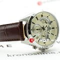 Кварцевый хронографХронографФункция позволяет измерять отрезки времени с особой точностью: часы, минуты, секунды. Верным признаком хронографа является наличие на циферблате 3 дополнительных окошек-счётчиков. отличается оригинальным дизайном циферблата, выдержанном в автомобильной стилистике. Стрелки, часовые метки, ободок отдельных счётчиков выполнены в серебристом цвете, они великолепно выделяются на кремовом фоне. Наручные часы одновременно воплощают классический и спортивный стиль, что делает их отличным вариантом на каждый день. Надёжное минеральное стекло. Коричневый ремешок из натуральной кожи. Завинчивающаяся задняя крышка. Водостойкость до 10 бар. Апертура даты, секундомер. Габариты: 51 x 43,8 x 12,4 мм.