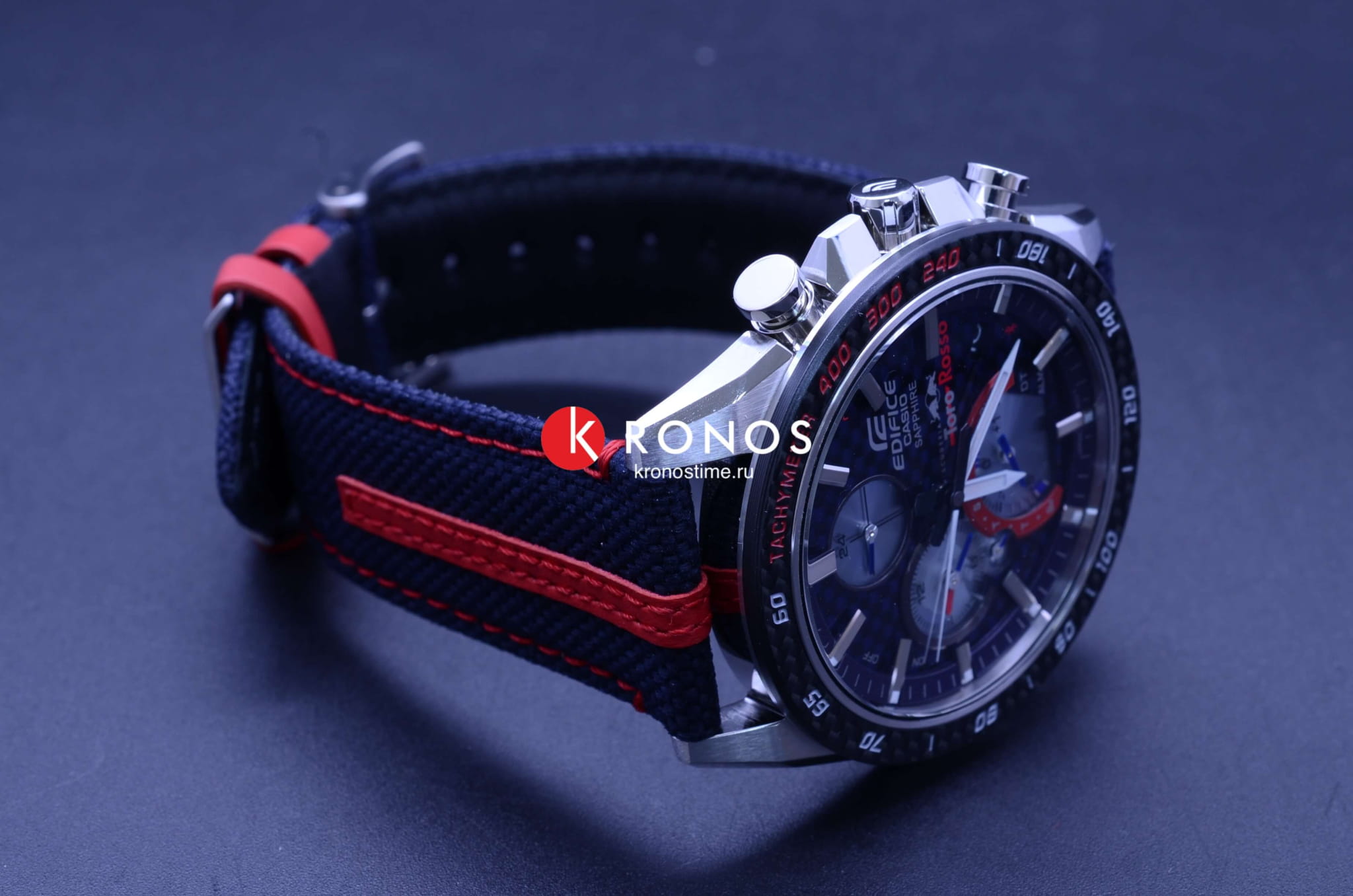 Для оформления премиальной модели были выбраны фирменные оттенки Scuderia Torro Rosso - синий, серебристый, красный. Оригинальным элементом стал тканевый ремешок со вставками из кевлара. Инженеры Casio оснастили часы тонким японским кварцевым механизмом, что позволило добиться появлению корпуса всего в 8,9 мм. Модель получает питание от энергии любого источника света, реализуя технологию . Индикатор состояния элемента питания подскажет, когда часам будет необходима подзарядка. Режим экономии энергии. Карбоновый безельБезельВнешний ободок, закрепляющий стекло. В спортивных часах так называется поворотное кольцо с делениями на циферблате, выполняет роль таймера – замеряет отрезки времени на шкале. Неподвижный безель – элемент декора. Однонаправленно вращающийся безель на дайверских часах позволяет фиксировать моменты погружения и выныривания на поверхность. и циферблат. Водостойкость 10 бар. Ударопрочный корпусУдаропрочный корпусМеханизм заключён в корпус, выполненный из современных материалов, устойчивых к ударам, механическим повреждениям и падению с высоты: инновационный пластик, карбон, нержавеющая сталь, титан. из стали 316L. Сапфировое стекло с антибликовым покрытием. Функции: BluetoothBluetoothСовременная технология, позволяющая синхронизировать часы с телефоном и переносить данные. Часы с Bluetooth расширяют возможности вашего смартфона и делают его использование ещё более удобным. нового поколения, секундомер, память на 200 результатов, поиск телефона, мировое времяМировое время Полезное часовое усложнение, отображающее время в основных городах и известных областях по всему миру, оно связано с часовыми поясами, удобно для путешественников и бизнесменов. , будильник, календарь. Люминесцентная подсветка NeobriteПодсветка NeobriteИспользование светонакопительных составов на основе сульфида цинка или алюмината стронция, яркий свет можно наблюдать на протяжении 6-10 часов после «зарядки» часов около источника света.. Габариты: 49,9 x 45,6 x 8,9 мм.