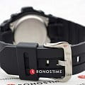 Компактный аксессуар имеет противоударный корпусУдаропрочный корпусМеханизм заключён в корпус, выполненный из современных материалов, устойчивых к ударам, механическим повреждениям и падению с высоты: инновационный пластик, карбон, нержавеющая сталь, титан. из полимерного материала, способного выдерживать падения с высоты и повреждения. Привлекательно смотрится безельБезельВнешний ободок, закрепляющий стекло. В спортивных часах так называется поворотное кольцо с делениями на циферблате, выполняет роль таймера – замеряет отрезки времени на шкале. Неподвижный безель – элемент декора. Однонаправленно вращающийся безель на дайверских часах позволяет фиксировать моменты погружения и выныривания на поверхность. из нержавеющей стали 316L с синим IP-покрытиемIP-покрытиеМетод ионного напыления. Демонстрирует повышенную устойчивость к истиранию, окислению и химическим веществам. Под воздействием высокого давления и температуры около 1500°C молекулы металла надёжно соединяются с частицами корпуса часов.. Аналого-цифровые часы работают от батарейки, рассчитанной на 3 года безупречной эксплуатации. Минеральное стекло. Автоматическая светодиодная подсветкаСветодиодная подсветкаСветодиодная или LED-подсветка обеспечивает появление яркого холодного свечения за счёт LED-элементов - маленьких лампочек. Они потребляют минимальное количество энергии, чаще всего можно встретить 1 светодиод, в нижней части циферблата. дисплея, стрелки и метки с люминесцентным покрытиемЛюминесцентное покрытиеПозволяет считывать показания времени в темноте. Производители наносят на стрелки, часовые индексы, безель или поверхность циферблата светонакопительный состав, дающий холодное свечение.. 12/24-часовое отображение времени. Надёжный полимерный ремешок. Водостойкость 200 метров. Дополнительные возможности: таймер, будильник, мировое времяМировое время Полезное часовое усложнение, отображающее время в основных городах и известных областях по всему миру, оно связано с часовыми поясами, удобно для путешественников и бизнесменов. , секундомер, автоматический календарь. Габариты: 46,4 x 52 x 14,9 мм.