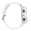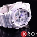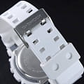 Наручные часы с массивным белым противоударным корпусомУдаропрочный корпусМеханизм заключён в корпус, выполненный из современных материалов, устойчивых к ударам, механическим повреждениям и падению с высоты: инновационный пластик, карбон, нержавеющая сталь, титан. стойко противостоят повреждениям, вибрации, падению с высоты. Стильно смотрятся синие детали и перфорированные стрелки, формируя динамичный дизайн. Японский кварцевый калибр с точностью хода +/- 15 секунд в месяц. Батарейка рассчитана на 2 года службы. Надёжный и комфортный ремешок из полимерного материала. Минеральное стекло. Яркая светодиодная подсветкаСветодиодная подсветкаСветодиодная или LED-подсветка обеспечивает появление яркого холодного свечения за счёт LED-элементов - маленьких лампочек. Они потребляют минимальное количество энергии, чаще всего можно встретить 1 светодиод, в нижней части циферблата. циферблата. 12/24-х часовое отображение времени. Устойчивость к негативному воздействию магнитного поля. Расчёт скорости по указанной дистанции. Водонепроницаемость 200 метров. Таймер обратного отсчёта, 5 будильников, автоматический календарь, мировое времяМировое время Полезное часовое усложнение, отображающее время в основных городах и известных областях по всему миру, оно связано с часовыми поясами, удобно для путешественников и бизнесменов. , секундомер, хронографХронографФункция позволяет измерять отрезки времени с особой точностью: часы, минуты, секунды. Верным признаком хронографа является наличие на циферблате 3 дополнительных окошек-счётчиков.. Габариты: 55 x 51,2 x 16,9 мм.
