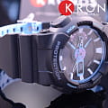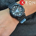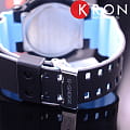 Элементы оформления напоминает лазерные и световые эффекты, без которых не обходятся концерты и ночные клубы. Оригинально смотрится двухцветный ремешок с внутренней стороной голубого цвета. Многоуровневый циферблат защищает закаленное минеральное стекло, устойчивое к царапинам. Японский кварцевый механизм получает питание от аккумулятора, срок службы которого составляет 2 года. Противоударный корпусУдаропрочный корпусМеханизм заключён в корпус, выполненный из современных материалов, устойчивых к ударам, механическим повреждениям и падению с высоты: инновационный пластик, карбон, нержавеющая сталь, титан. из полимерного пластика. Водонепроницаемость 20 бар. Устранение влияния магнитного поля. Светодиодная подсветкаСветодиодная подсветкаСветодиодная или LED-подсветка обеспечивает появление яркого холодного свечения за счёт LED-элементов - маленьких лампочек. Они потребляют минимальное количество энергии, чаще всего можно встретить 1 светодиод, в нижней части циферблата.. Секундомер, хронографХронографФункция позволяет измерять отрезки времени с особой точностью: часы, минуты, секунды. Верным признаком хронографа является наличие на циферблате 3 дополнительных окошек-счётчиков., расчёт средней скорости пройденного пути, календарь до 2099 года, мировое времяМировое время Полезное часовое усложнение, отображающее время в основных городах и известных областях по всему миру, оно связано с часовыми поясами, удобно для путешественников и бизнесменов. , таймер, будильник. Габариты: 55 x 51,2 x 16,9 мм.