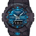 Часы в лаконичном исполнении с продуманными динамичными элементами стильно смотрятся благодаря сочетанию чёрного цвета и синего хромового циферблата. Модель получила уменьшенный ударопрочный корпусУдаропрочный корпусМеханизм заключён в корпус, выполненный из современных материалов, устойчивых к ударам, механическим повреждениям и падению с высоты: инновационный пластик, карбон, нержавеющая сталь, титан. из полимерного материала, если сравнивать с аксессуарами серии GA-700. Кнопка светодиодной подсветкиСветодиодная подсветкаСветодиодная или LED-подсветка обеспечивает появление яркого холодного свечения за счёт LED-элементов - маленьких лампочек. Они потребляют минимальное количество энергии, чаще всего можно встретить 1 светодиод, в нижней части циферблата. вынесена в нижнюю часть, обеспечивая удобное пользование. Японский кварцевый механизм с точностью хода +/- 15 секунд в месяц. Батарейка рассчитана на 3 года службы. Включение и отключение звука кнопок. Ремешок из высококачественного пластика. Закаленное минеральное стекло. Стрелки с люминесцентным покрытиемЛюминесцентное покрытиеПозволяет считывать показания времени в темноте. Производители наносят на стрелки, часовые индексы, безель или поверхность циферблата светонакопительный состав, дающий холодное свечение.. Водонепроницаемость до 200 метров. Автоматический календарь до 2099 года, таймер, хронографХронографФункция позволяет измерять отрезки времени с особой точностью: часы, минуты, секунды. Верным признаком хронографа является наличие на циферблате 3 дополнительных окошек-счётчиков., 5 будильников, секундомер, мировое времяМировое время Полезное часовое усложнение, отображающее время в основных городах и известных областях по всему миру, оно связано с часовыми поясами, удобно для путешественников и бизнесменов. . Габариты: 54,1 x 48,6 x 15,5 мм.