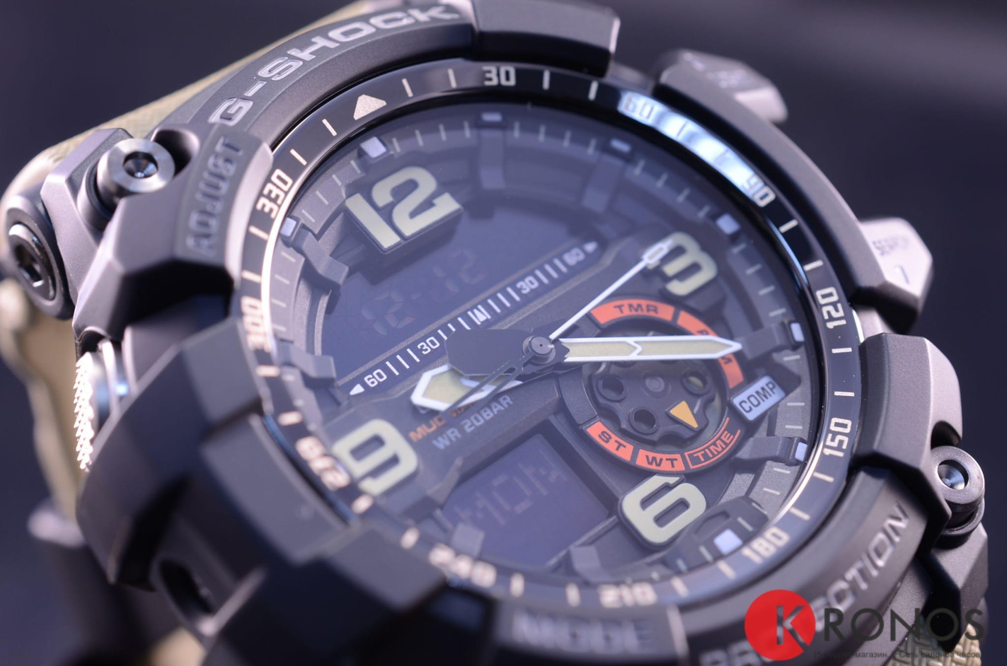 Японские мужские часы-хронографХронографФункция позволяет измерять отрезки времени с особой точностью: часы, минуты, секунды. Верным признаком хронографа является наличие на циферблате 3 дополнительных окошек-счётчиков. Casio G-Shock GG-1000-1A5 из коллекции G-Shock. При создании этой модели были учтены экстремальные ситуации, с которыми сталкиваются владельцы часов в суровых условиях пустыни. Mudmaster. Индикатор низкого заряда батареи. Минеральное стеклоМинеральное стеклоМинеральное стекло представляет собой искусственно выращенный минерал кварца. Такое стекло отличается особой устойчивостью к повреждениям и царапинам. Уступает по некоторым качествам сапфировому стеклу. устойчивое к появлению царапин, обладающее высокой прозрачностью. Ударопрочный корпусУдаропрочный корпусМеханизм заключён в корпус, выполненный из современных материалов, устойчивых к ударам, механическим повреждениям и падению с высоты: инновационный пластик, карбон, нержавеющая сталь, титан. защищает механизм от ударов и вибрации. Светодиодная подсветкаСветодиодная подсветкаСветодиодная или LED-подсветка обеспечивает появление яркого холодного свечения за счёт LED-элементов - маленьких лампочек. Они потребляют минимальное количество энергии, чаще всего можно встретить 1 светодиод, в нижней части циферблата. освещает весь циферблат. Мировое времяМировое время Полезное часовое усложнение, отображающее время в основных городах и известных областях по всему миру, оно связано с часовыми поясами, удобно для путешественников и бизнесменов. – 48 городов (29 часовых поясов). СекундомерСекундомерСекундоме́р — прибор, способный измерять интервалы времени с точностью до долей секунды. с точностью измерения 1/100 секунды и измерением до 23 часов 59 минут 59,99 cек. ТаймерТаймерОтсчитывает секунды в обратном направлении в заданном интервале времени. обратного отсчета (диапазон времени 24 часа), автоматический календарь, 12/24 отображение времени. 5 будильникаБудильникБуди́льник — часы, в заданный момент времени подающие звуковой, световой и/или в редких случаях другой сигнал., один с функцией Snooze, ежечасный сигнал. Встроенный цифровой компас. Диапазон измерения от 0° до 359° с точностью 1°. Коррекция магнитного склонения. Встроенный датчик температуры от -10° до +60°С с точностью 0,1°C. Класс водозащиты: 200 метров, позволит плавать, нырять и заниматься другими водными видами спорта. Ремешок из полимерного материала на стандартной застежке.