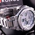, таймер, секундомер, мировое времяМировое время Полезное часовое усложнение, отображающее время в основных городах и известных областях по всему миру, оно связано с часовыми поясами, удобно для путешественников и бизнесменов. , 5 будильников, хронографХронографФункция позволяет измерять отрезки времени с особой точностью: часы, минуты, секунды. Верным признаком хронографа является наличие на циферблате 3 дополнительных окошек-счётчиков., календарь. Габариты: 52,4 x 59,1 x 16,1 мм.