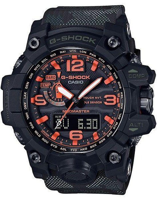 Лимитированные мужские часы из коллекции Master of G выполнены в стиле миллитари. Исполнение премиум-класса, грязеустойчивые, с водонепроницаемостью в 20 атмосфер. Кварцевые часы с аналоговым и цифровым способами отображения времени, и с корпусом, выполненым из пластика и высокопрочной стали. Черный циферблат защищает надежное сапфировое стекло. Браслет ярко-оранжевого цвета из прочного пластика. Вес часов 119 грамм. Часы Casio GWG-1000-1A9 оснащены множеством дополнительных функций: компас, термометр, таймер обратного отсчета, барометр, высотомер, секундомер, индикатор запаса хода, подсветкой стрелок и дисплея. Заряжаются часы от солнечной батареи, в режиме сохранения энергии сохраняют работоспособность без подзарядки в течении 25 месяцев.