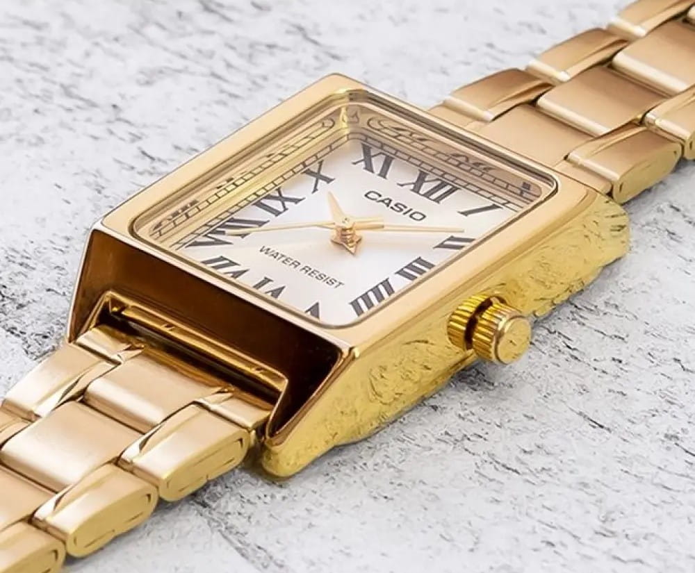 Женские кварцевые часы с минеральным стекломМинеральное стеклоМинеральное стекло представляет собой искусственно выращенный минерал кварца. Такое стекло отличается особой устойчивостью к повреждениям и царапинам. Уступает по некоторым качествам сапфировому стеклу. Casio Collection LTP-V007G-9B, кварцевый механизм с высокой точностью. Класс водозащиты: 30 метров, позволит защитить корпус от случайных брызг или капель дождя. Корпус часов изготовлен из стали с IP-покрытиемIP-покрытиеМетод ионного напыления. Демонстрирует повышенную устойчивость к истиранию, окислению и химическим веществам. Под воздействием высокого давления и температуры около 1500°C молекулы металла надёжно соединяются с частицами корпуса часов.. Стальной браслет на раскладной застёжкеРаскладная застёжкаТакой тип застёжки используется только на браслетах из металла. Она никогда не раскрывается полностью, происходит разделение на 2 и более частей. Раскладывающая застёжка снизит вероятность потери часов к минимуму. с IP-покрытиемIP-покрытиеМетод ионного напыления. Демонстрирует повышенную устойчивость к истиранию, окислению и химическим веществам. Под воздействием высокого давления и температуры около 1500°C молекулы металла надёжно соединяются с частицами корпуса часов..